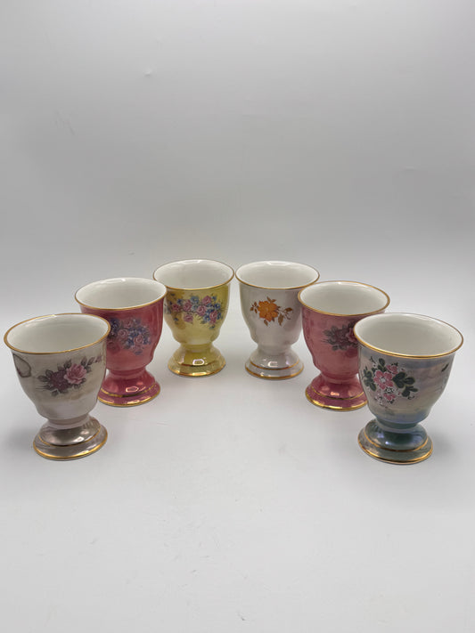 Set of Six Vintage Lusterware Floral Pedestal Cups SPRING Theme