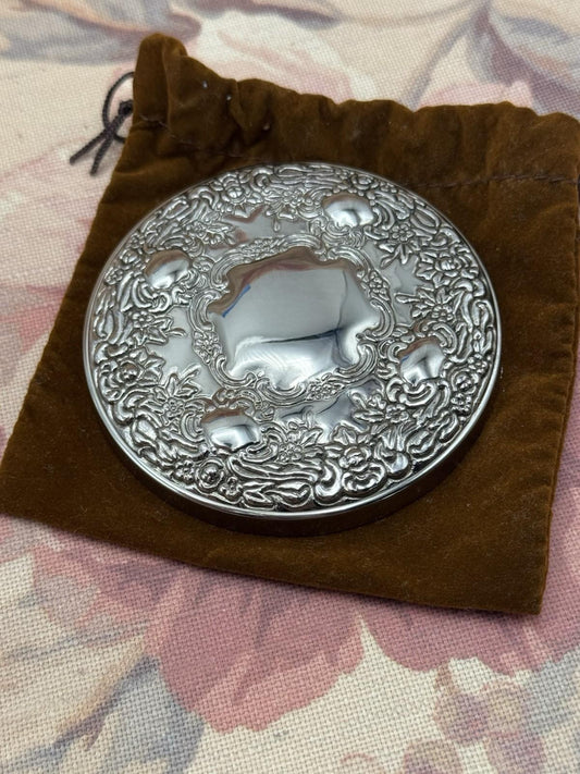 Vintage Silverplate Hand Mirror Ornate Floral Repoussé 3” Round
