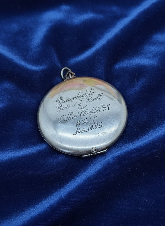 O.E.S Locket Pocket Watch Style Sterling Inscribed Mar 19. 25 Etc.