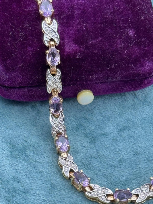 Tennis Bracelet Purple Color Stones Sterling Silver 925 XO LOVE Design 7in