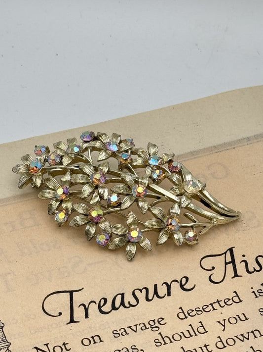 Vintage Silvertone Brooch Honey Rhinestone Floral Bouquet 4” Large Unsigned