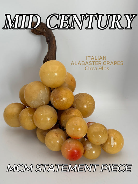 Vintage Italian ALABASTER MCM Decorative Grape Cluster with Real Grape Wood Stem 9lbs STATEMENT PIECE