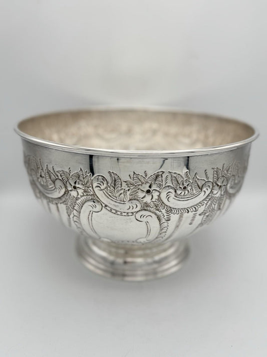 Vintage IFS Sheffield Silver Plate Hand Chased Punchbowl – Made in England