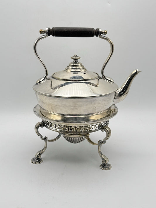 Edwardian Silverplate Teapot on Stand with Burner – Greek Key Design
