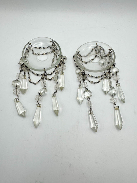 2 Antique Style Crystal Bobeche Candle Drip Pans w/ Prisms 3” Diameter 4.75”