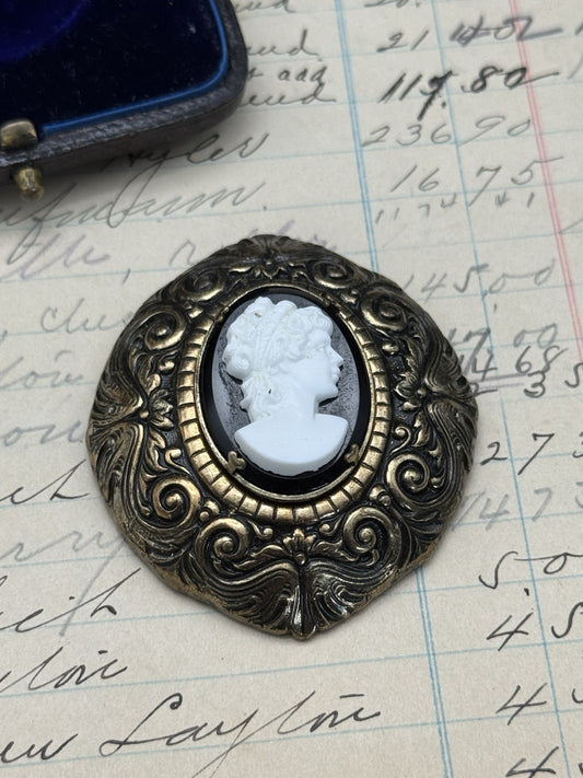 Antique Style Brass Cameo Fur Clip Raised Relief ESTATE FIND