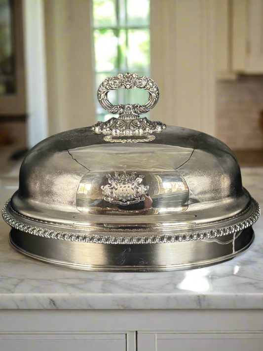 Large Sheffield Plate Georgian Style Meat Dome with Removable Handle Ca 15.75” x 11.75” x 12” SUBSTANTIAL