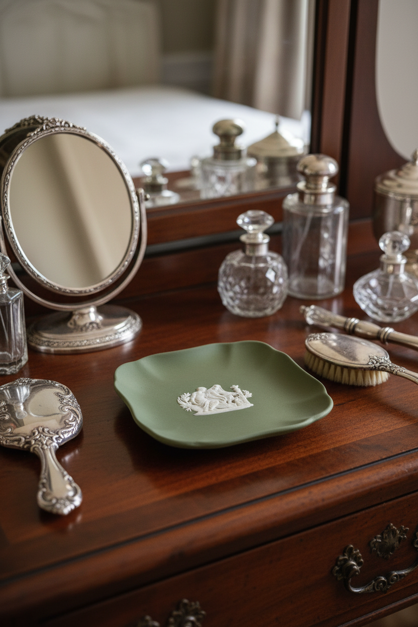 Its softly scalloped form and matte jasper finish make it perfect for holding rings, small jewelry, or simply adding a refined classical touch to a bedside table or vanity.