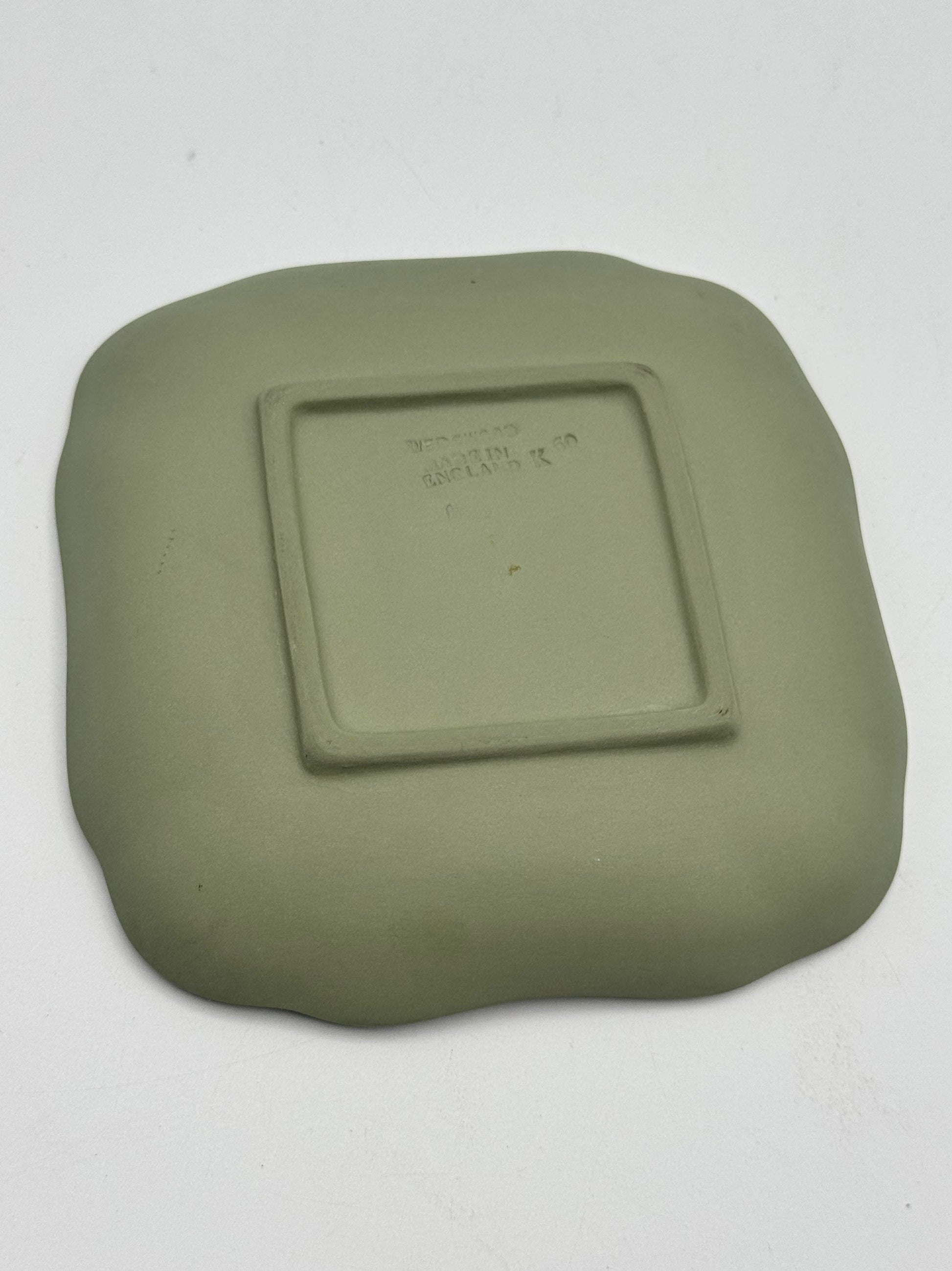 1960 Wedgwood Olive Green Jasperware Scalloped Trinket Dish England