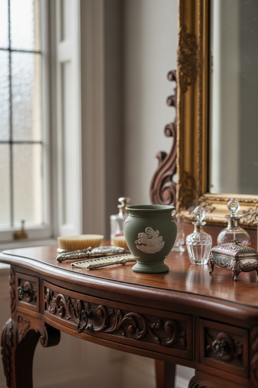 Beautiful styled alone on a mantel, tucked into a bookcase, or used to hold a single dried rose, lavender stem, or miniature floral arrangement. Also lovely as a decorative accent in a curio cabinet or on a silver tray.