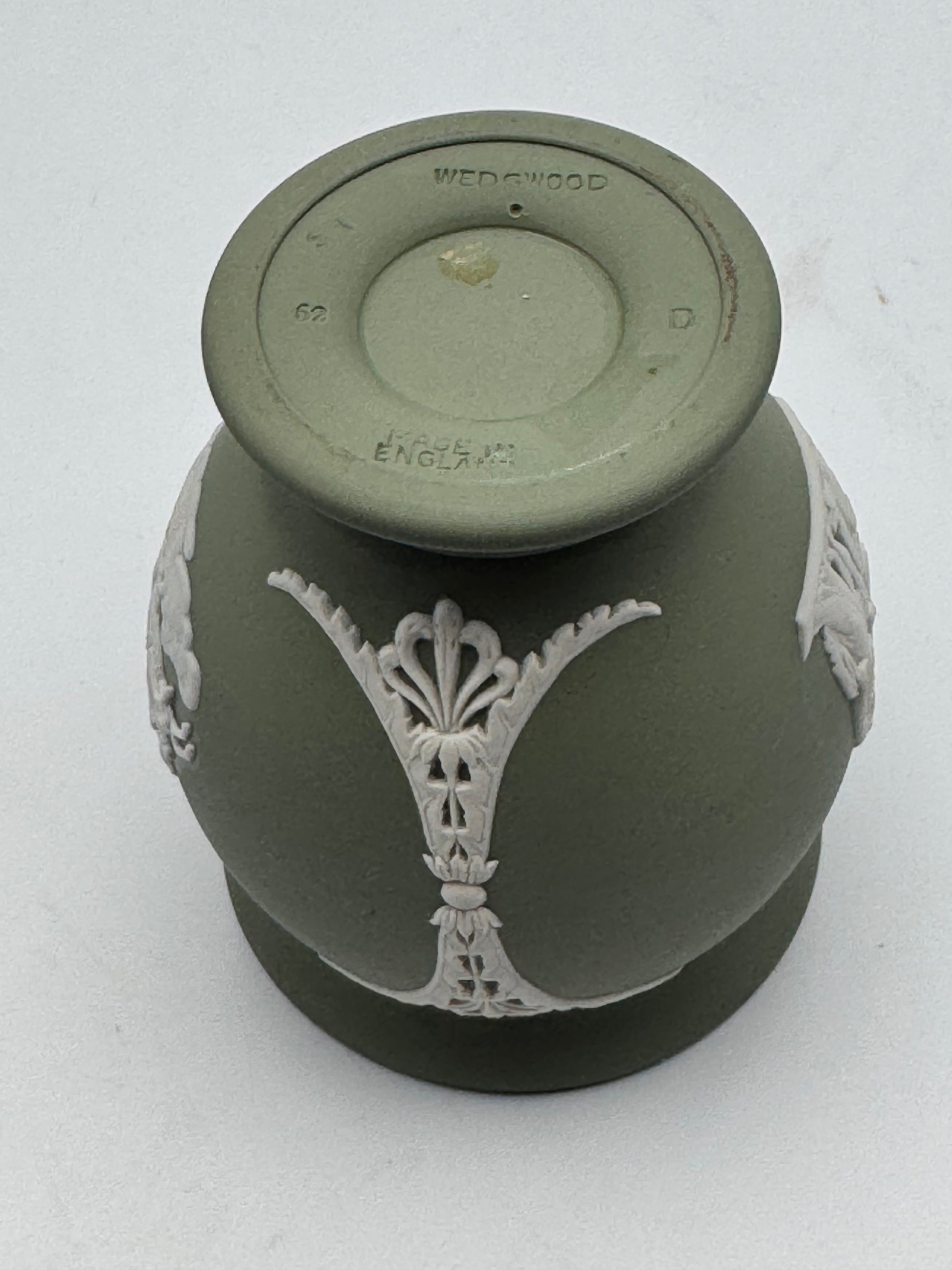 1962 Wedgwood Green Jasperware Miniature Urn Vase England