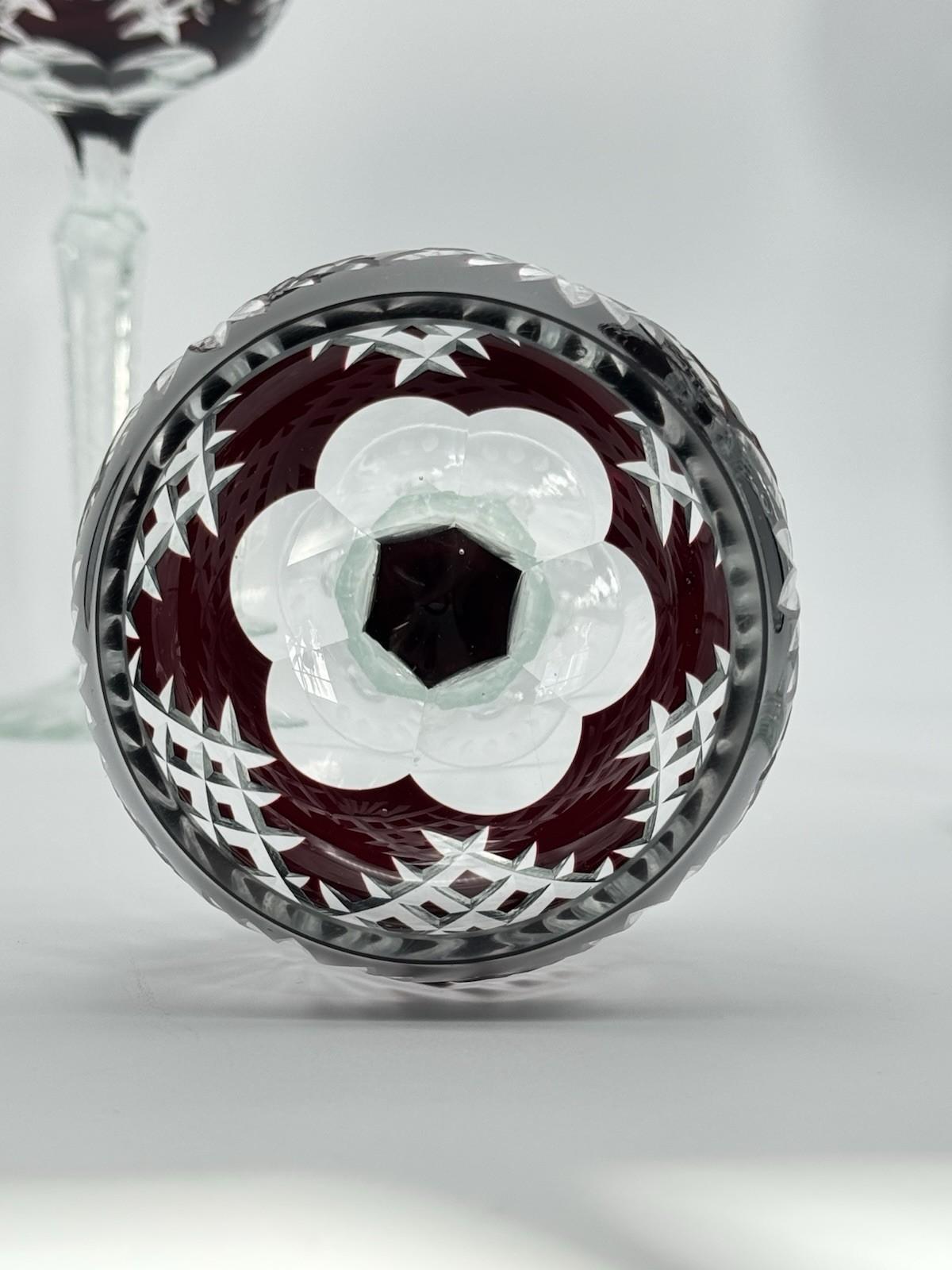 4 Vintage Bohemian STYLEV Ruby Cut-to-Clear Crystal Goblets – 8.5” Tall