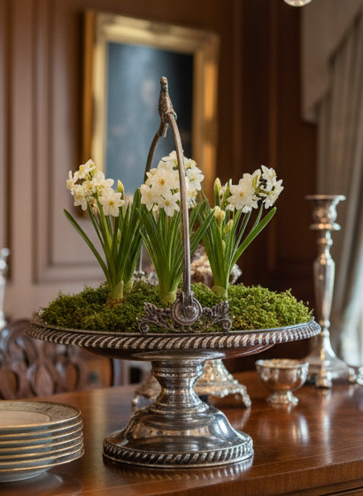 The Antique Middleton Silverplate Quadruple Brides Basket with a floral design is a beautiful and elegant piece of silverware. Crafted from silverplate, this basket features intricate detailing and a timeless design that adds a touch of sophistication to any space. Perfect for displaying flowers or potpourri, this piece is sure to be a stunning addition to any antique collection or home decor.