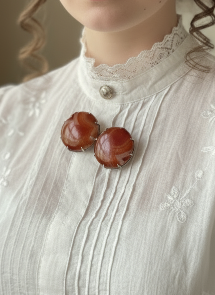 This antique Victorian brooch is a stunning addition to any collection. The 2" silver piece features 2 beautiful agate stones, with stunning banding. A stunning collector piece that will not only show your love for unique antiques but no doubt be the statement piece for you.