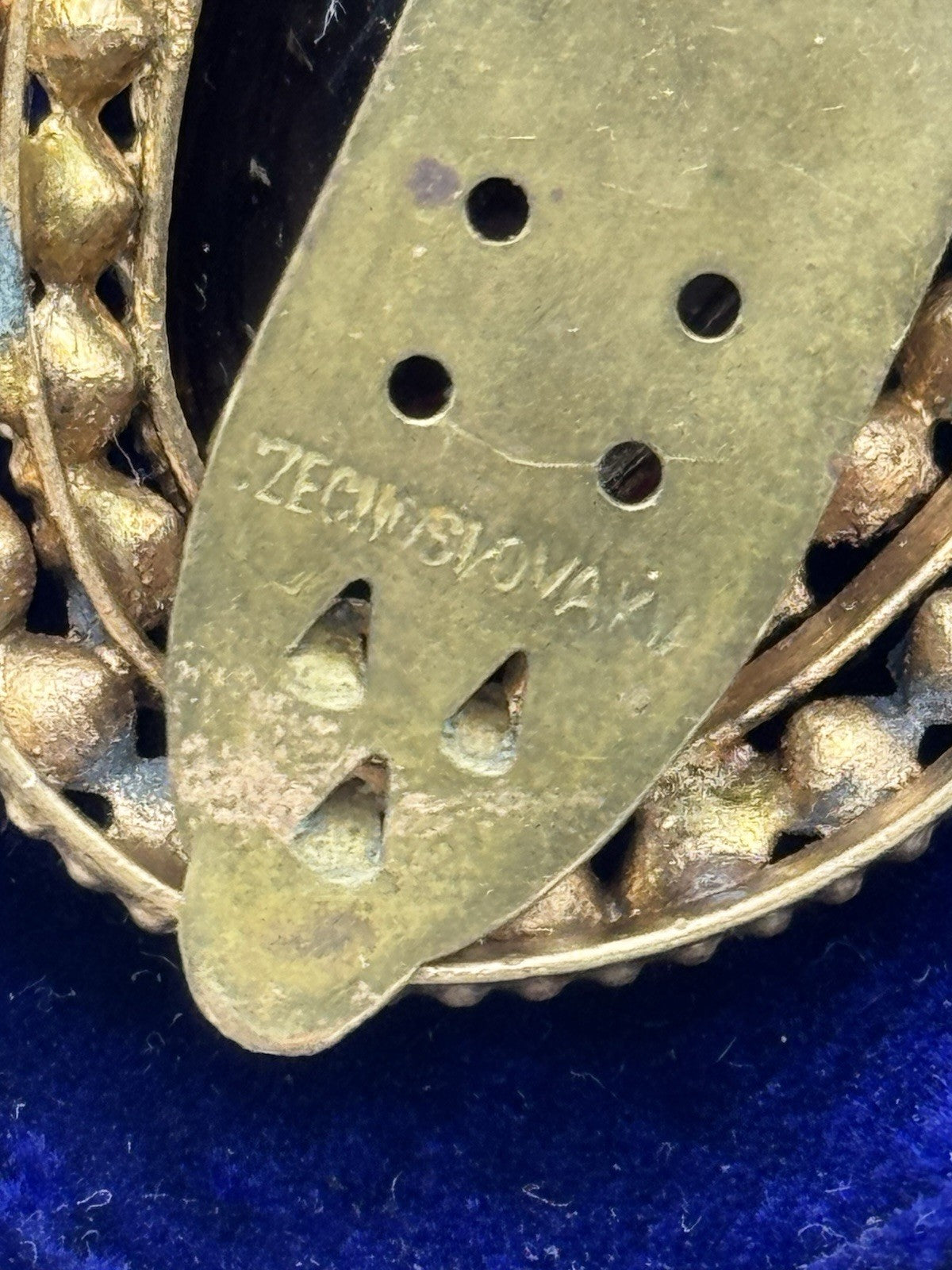The back is stamped Czechoslovakia, confirming its early 20th-century origin. Dress clips like this were versatile accessories, worn on dresses, coats, collars, and even hats to add sparkle and sophistication.