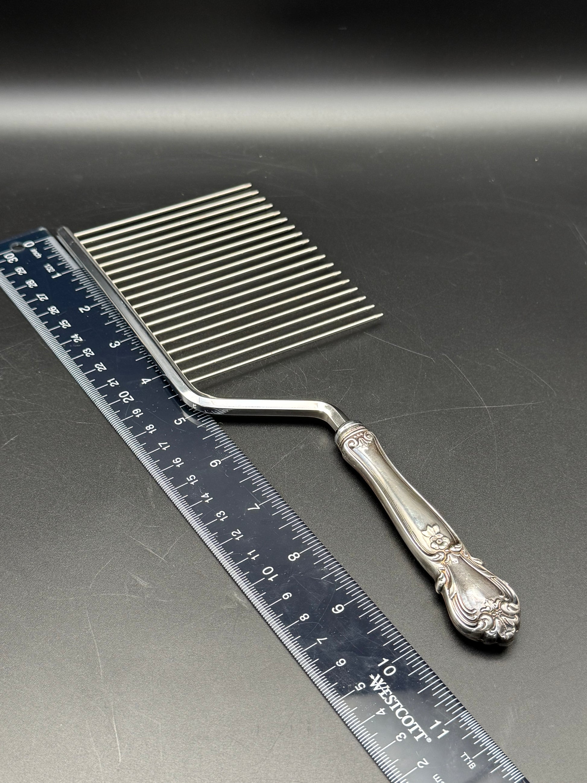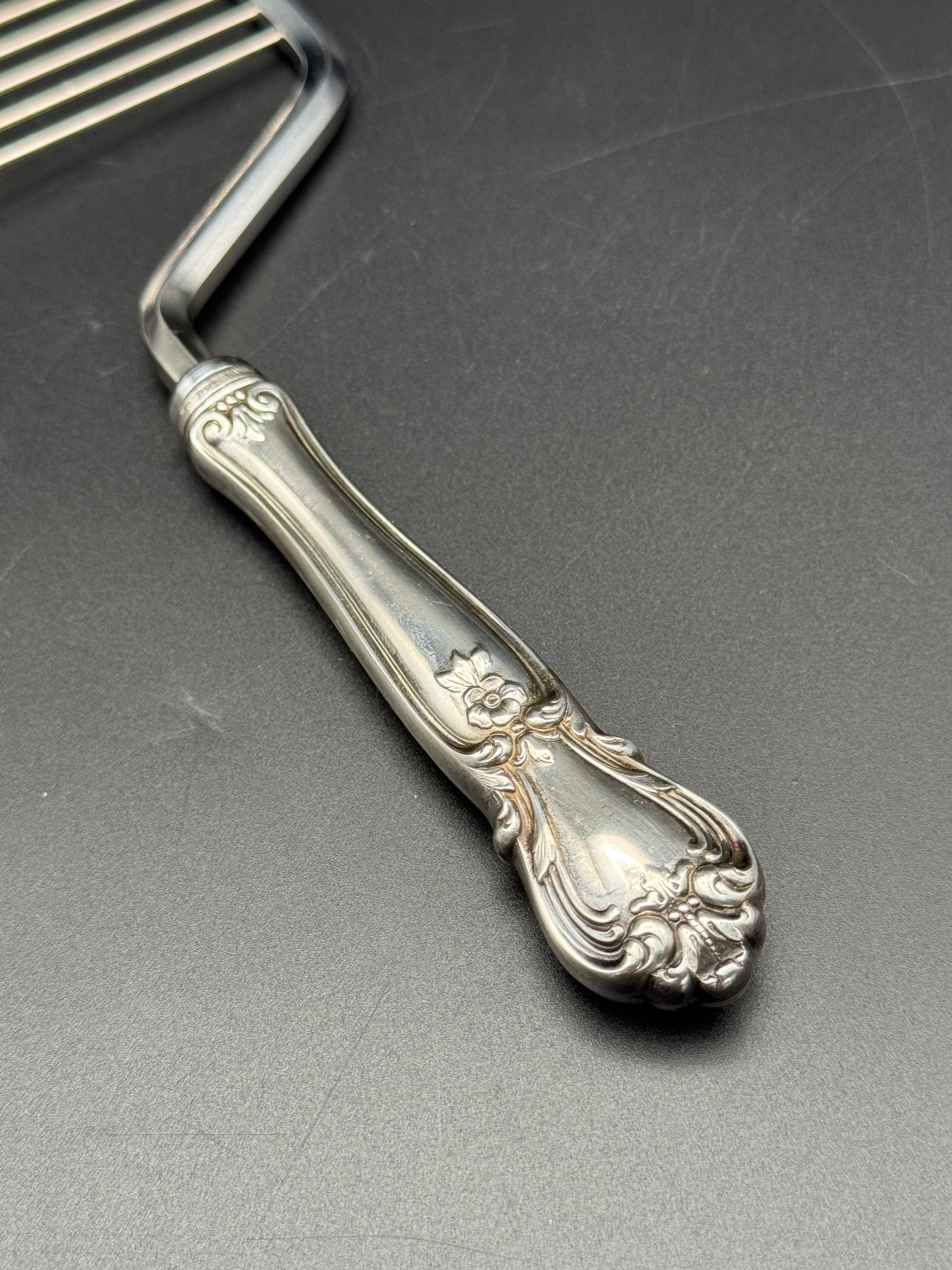 The Vintage Cake Breaker by Weidlich Sterling with a sterling silver handle is a unique and elegant piece perfect for anyone looking to add a touch of re-invented Art Nouveau style to their flatware collection.