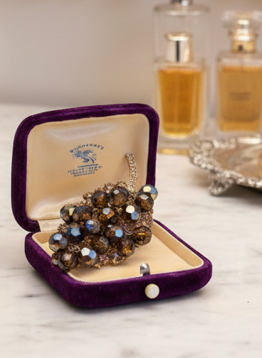 The JULIANA Dangling AB Crystal Leaf Brooch is a vintage accessory that exudes beauty and elegance. Featuring a gold tone finish with brown crystal accents, this brooch is perfect for all occasions. The leaf-shaped design adds a touch of artistry, making it a unique and stunning piece of fashion jewelry. With its brand name known for quality and style, this brooch is sure to become a favorite statement piece in any jewelry collection.
