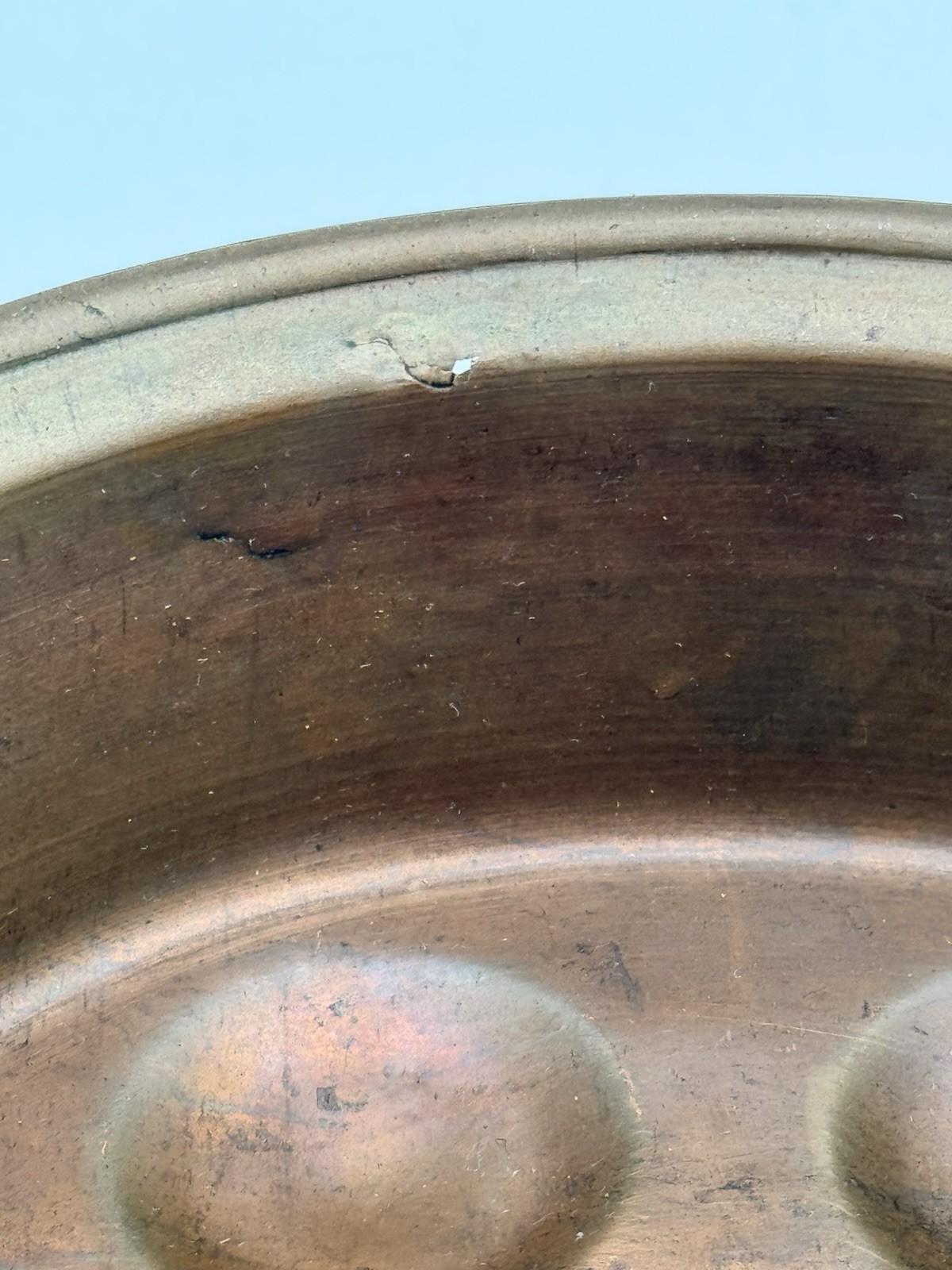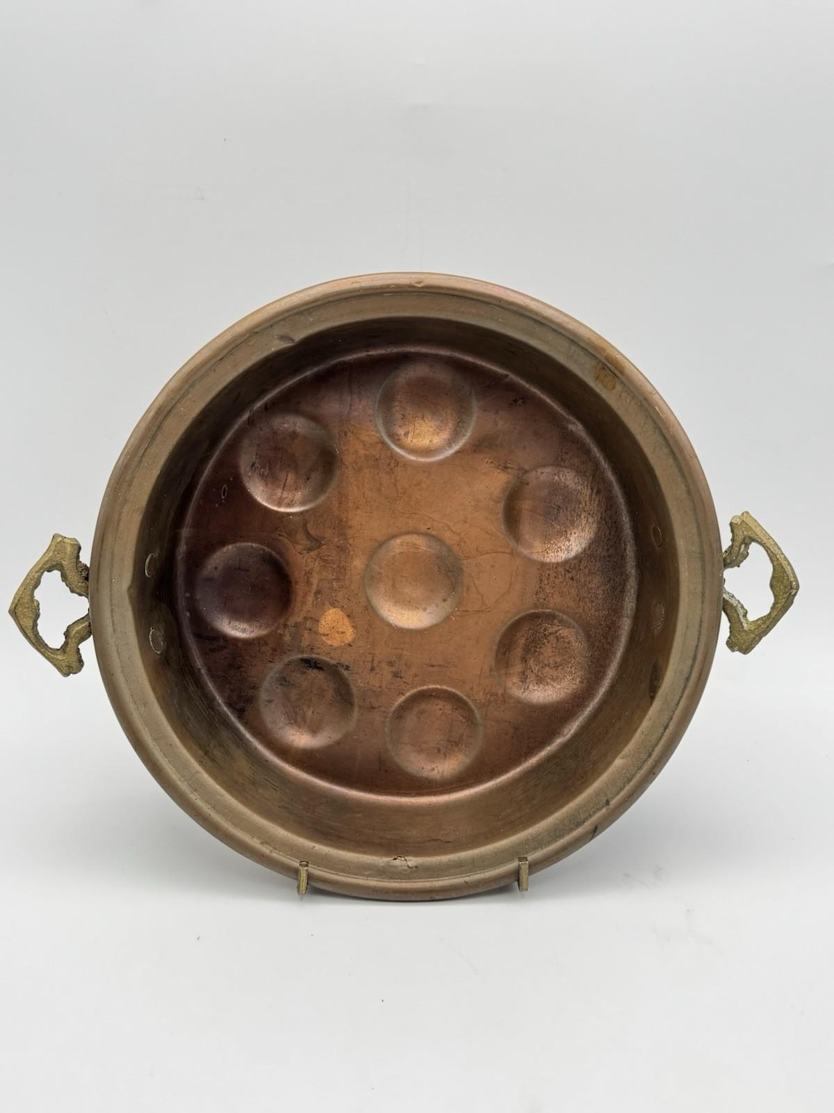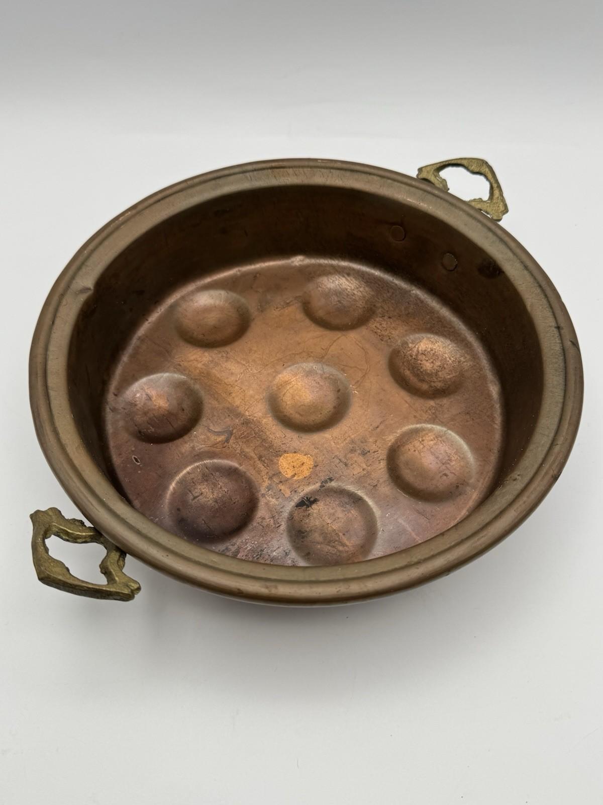 Egg Escargot Oyster Pan Copper 8 Well Brass Handles 10.5”