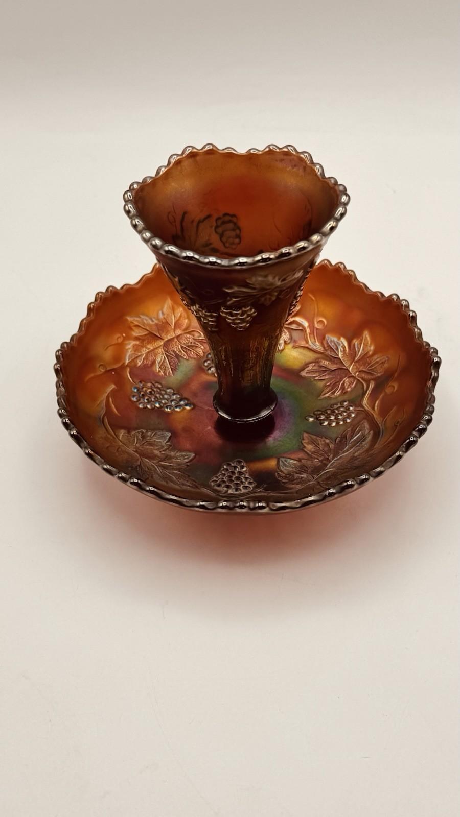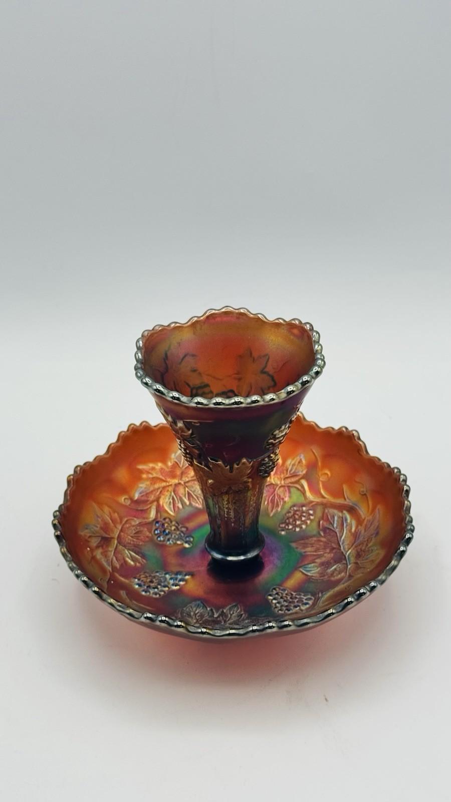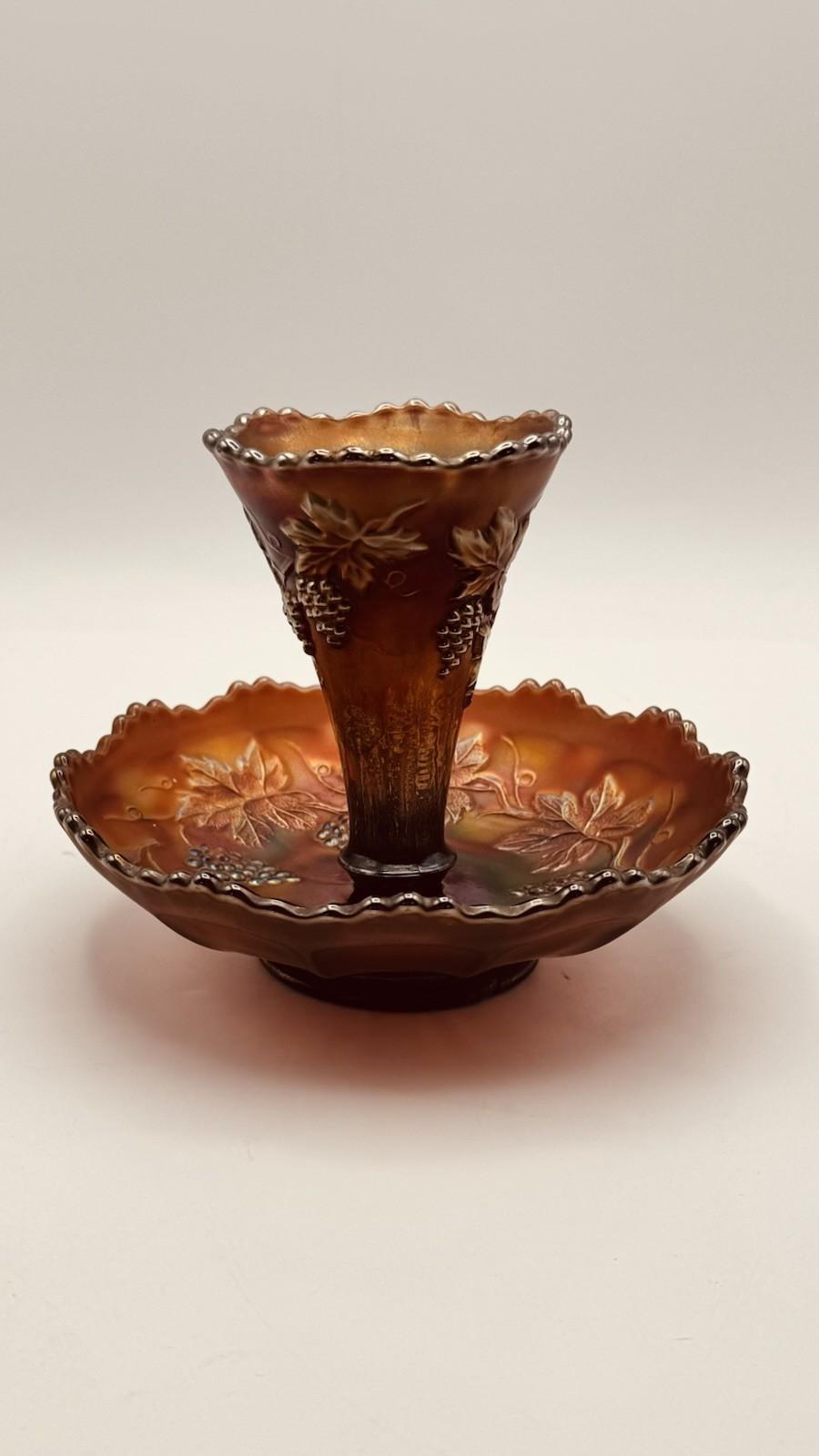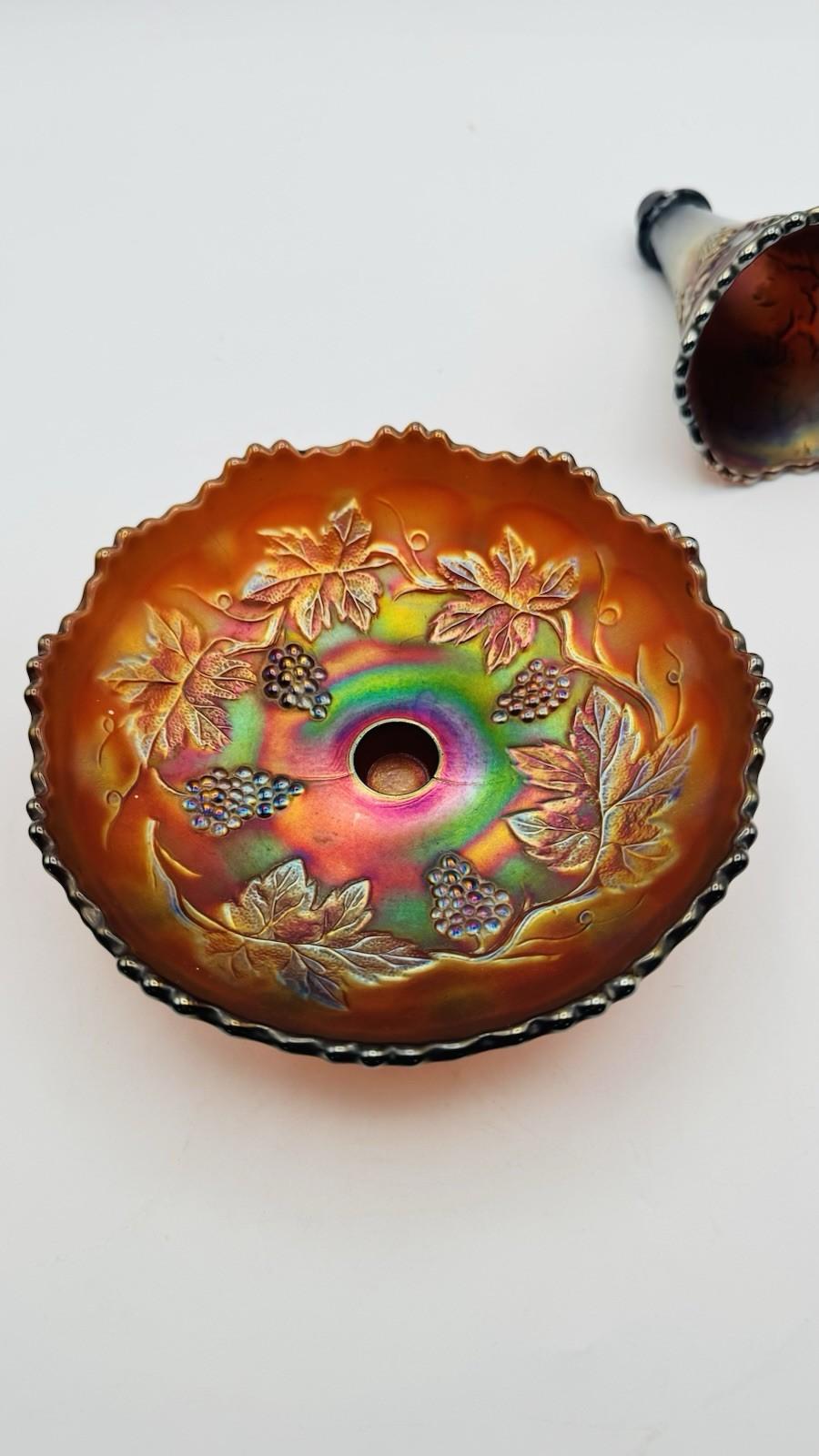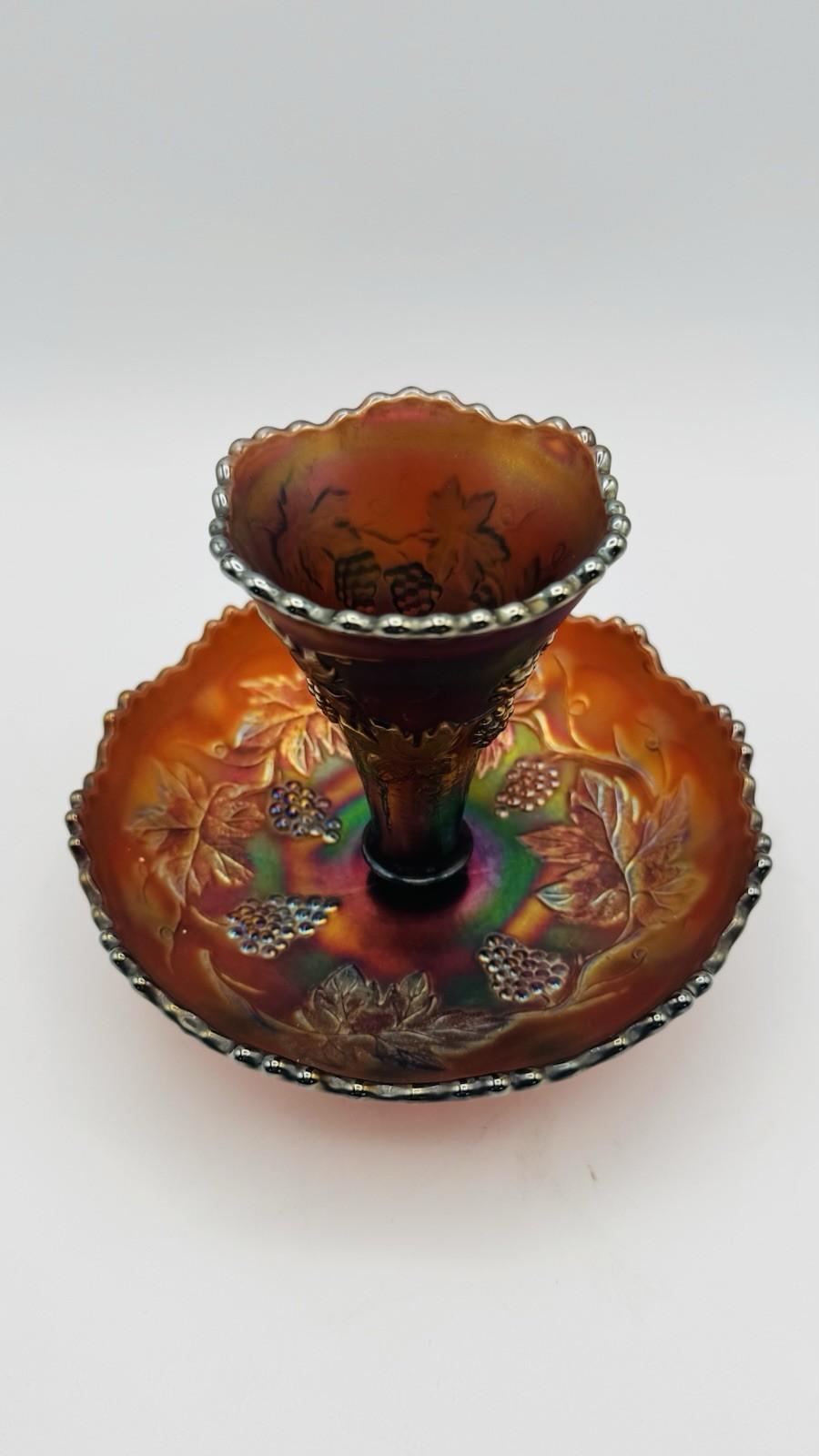 FENTON Carnival Glass EPERGNE 5” Grapes Vines READ‼️