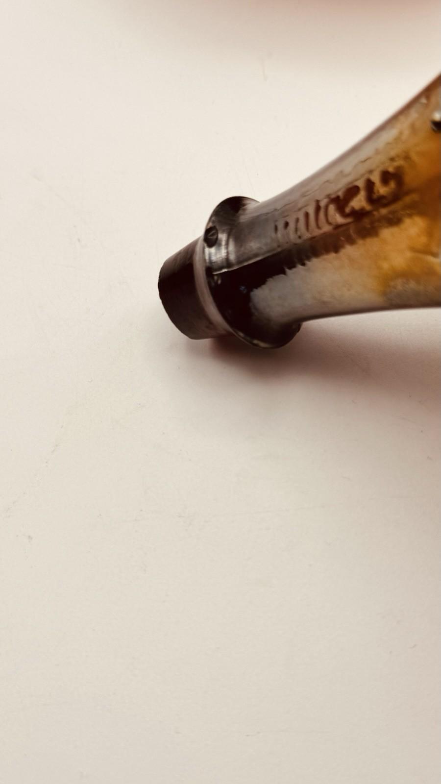 Antique condition with two very small edge chips located at the lower rim of the flute where it meets the base, as shown in the close-up photos. These are minor, do not affect stability or display, and are typical of glass of this age.