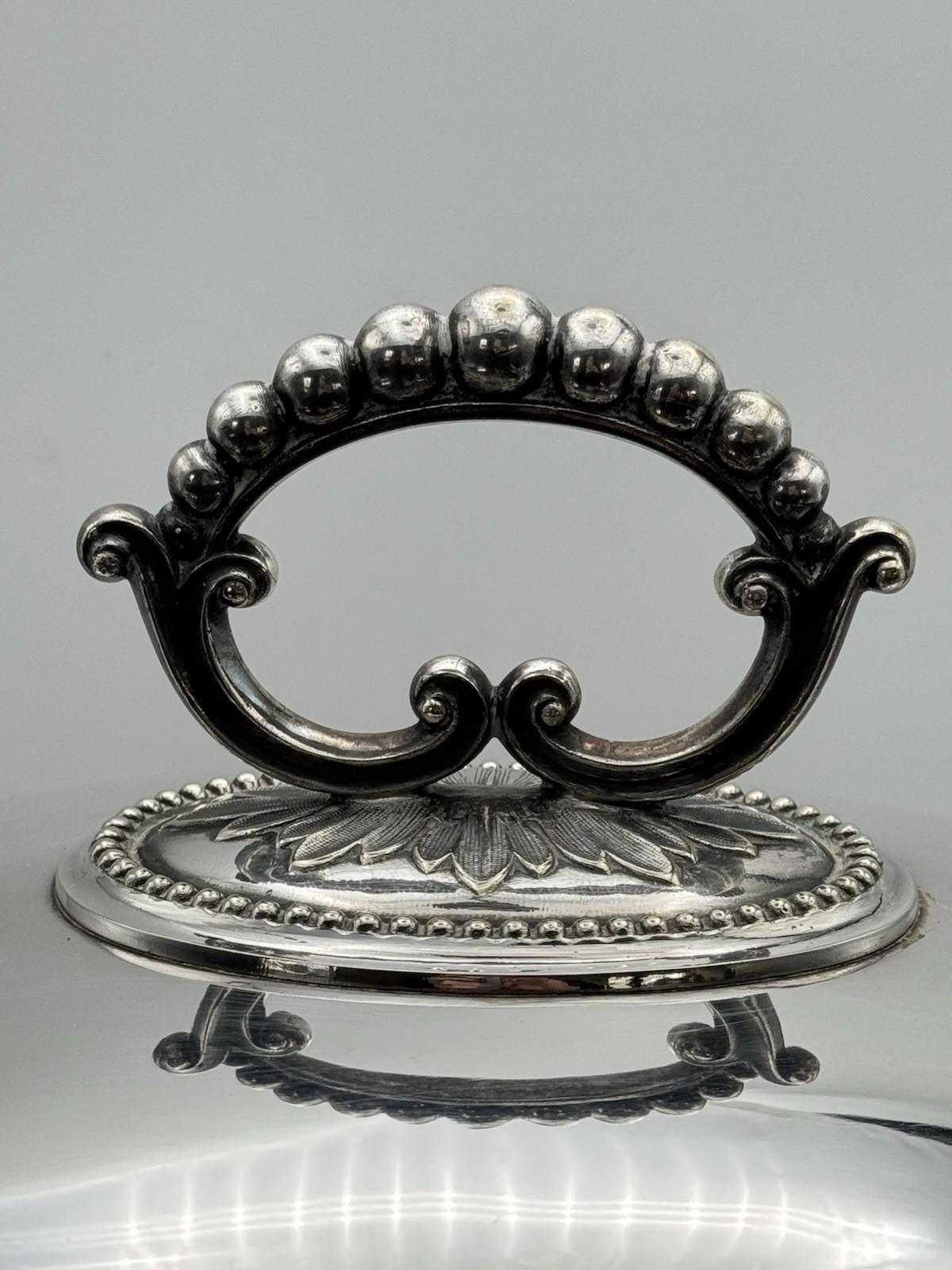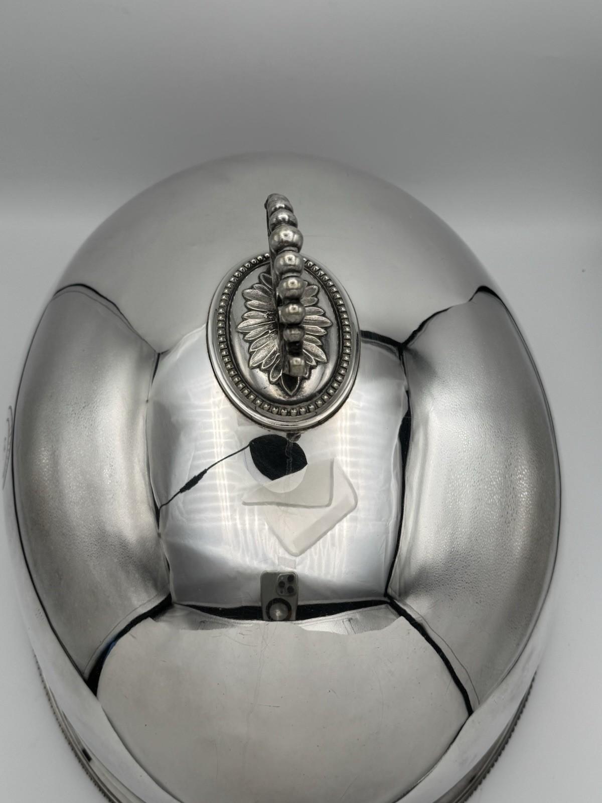 Condition: Good antique condition with some age-appropriate surface wear and minor dings, expected from use. The silverplate retains a handsome patina, and the dome remains sturdy and highly presentable.