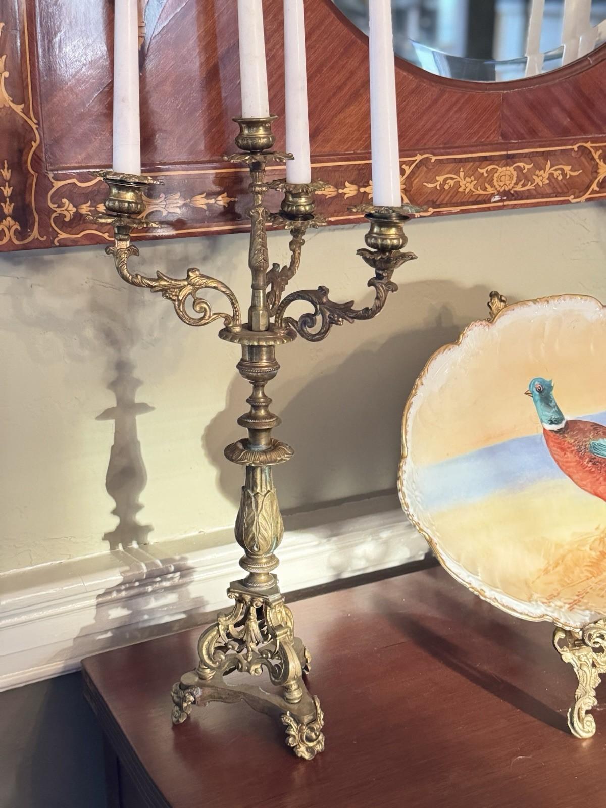 Pair 5-Light Candelabra Antique Style Brass – Rococo Revival Elegance