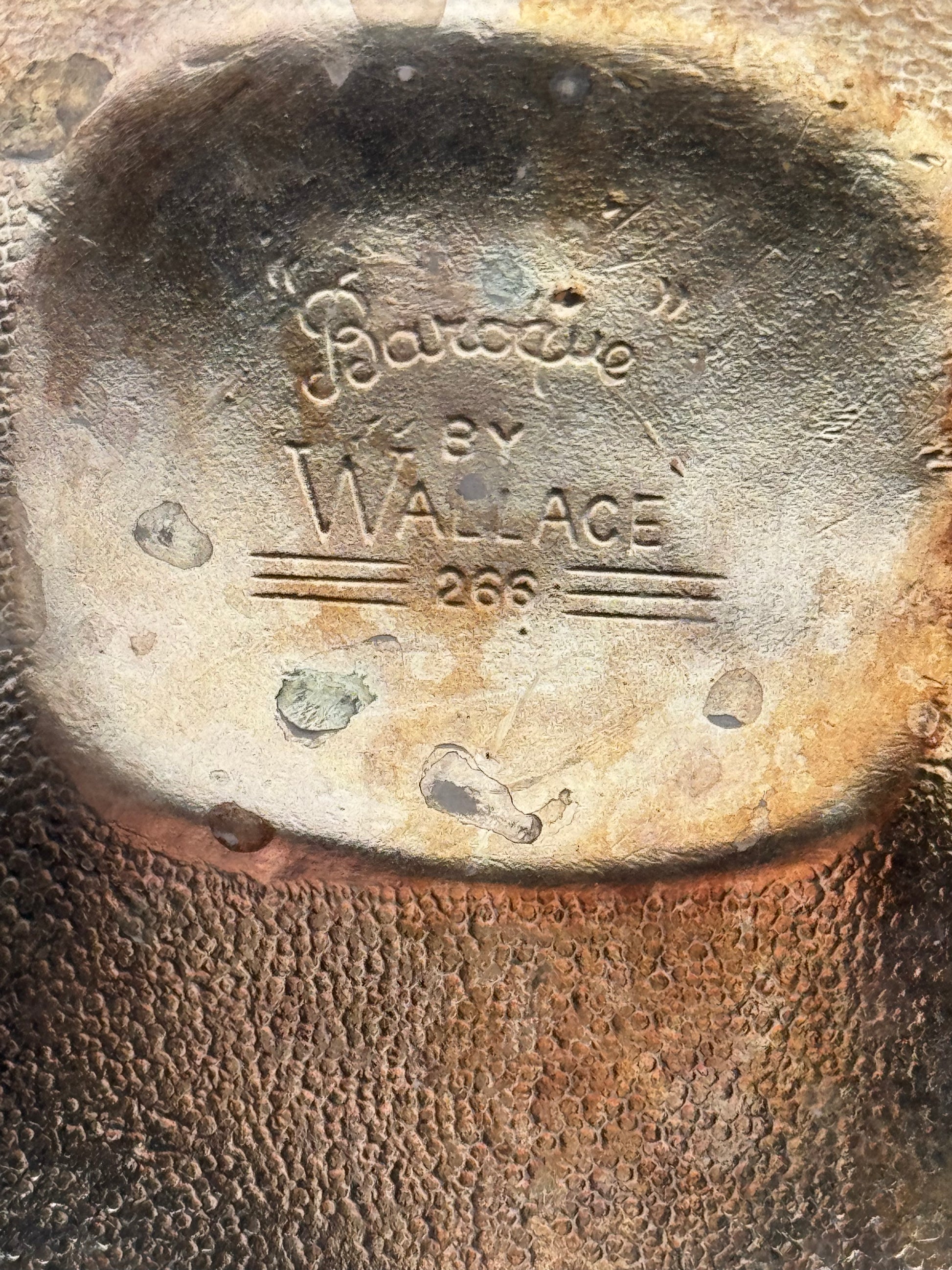 These are quality pieces with true weight and presence — beautifully crafted with the refinement and balance that Wallace is known for. The design features deeply embossed decoration at the rim and base, classic contours, and a brilliant silver finish that reflects light beautifully.