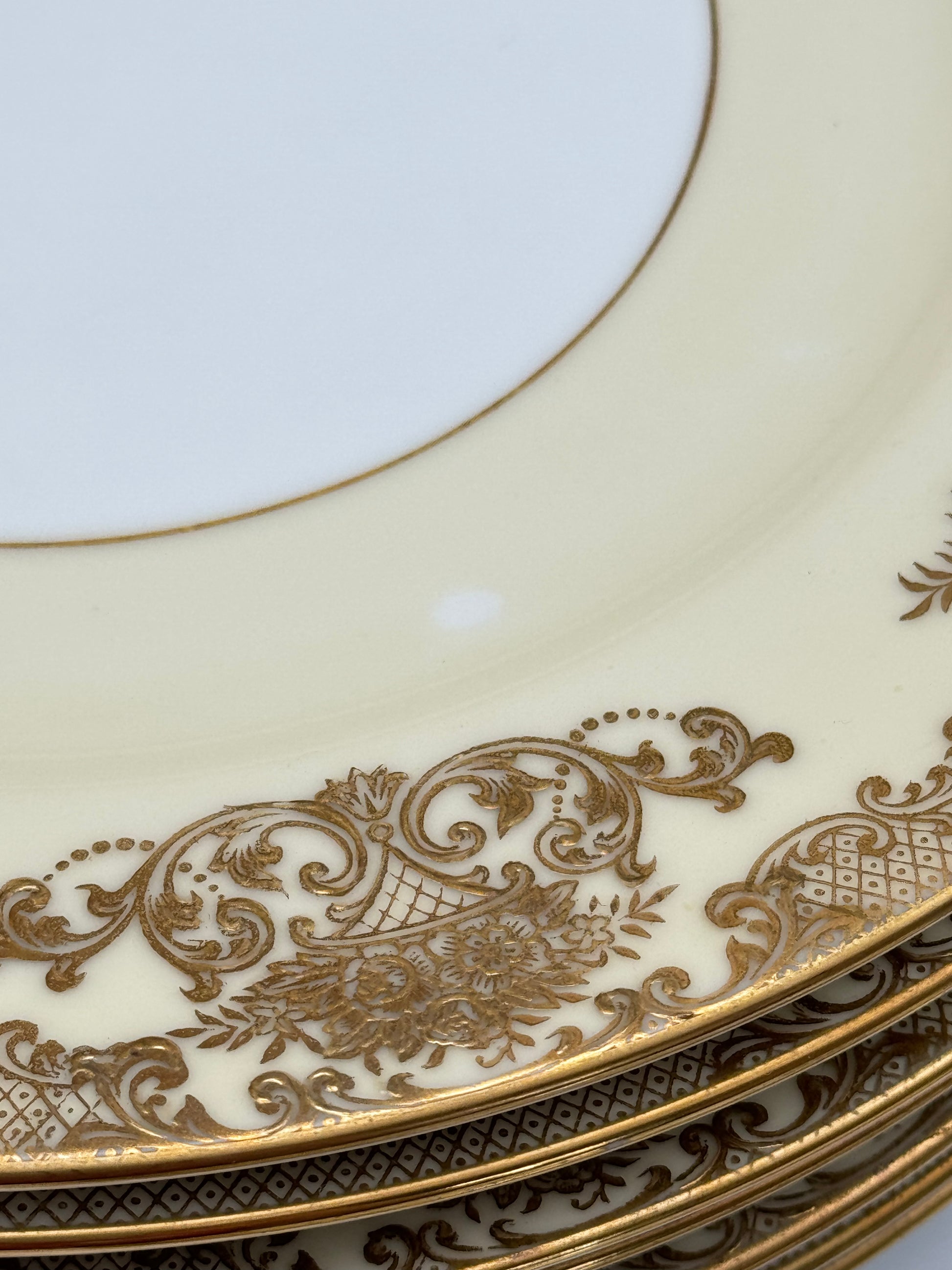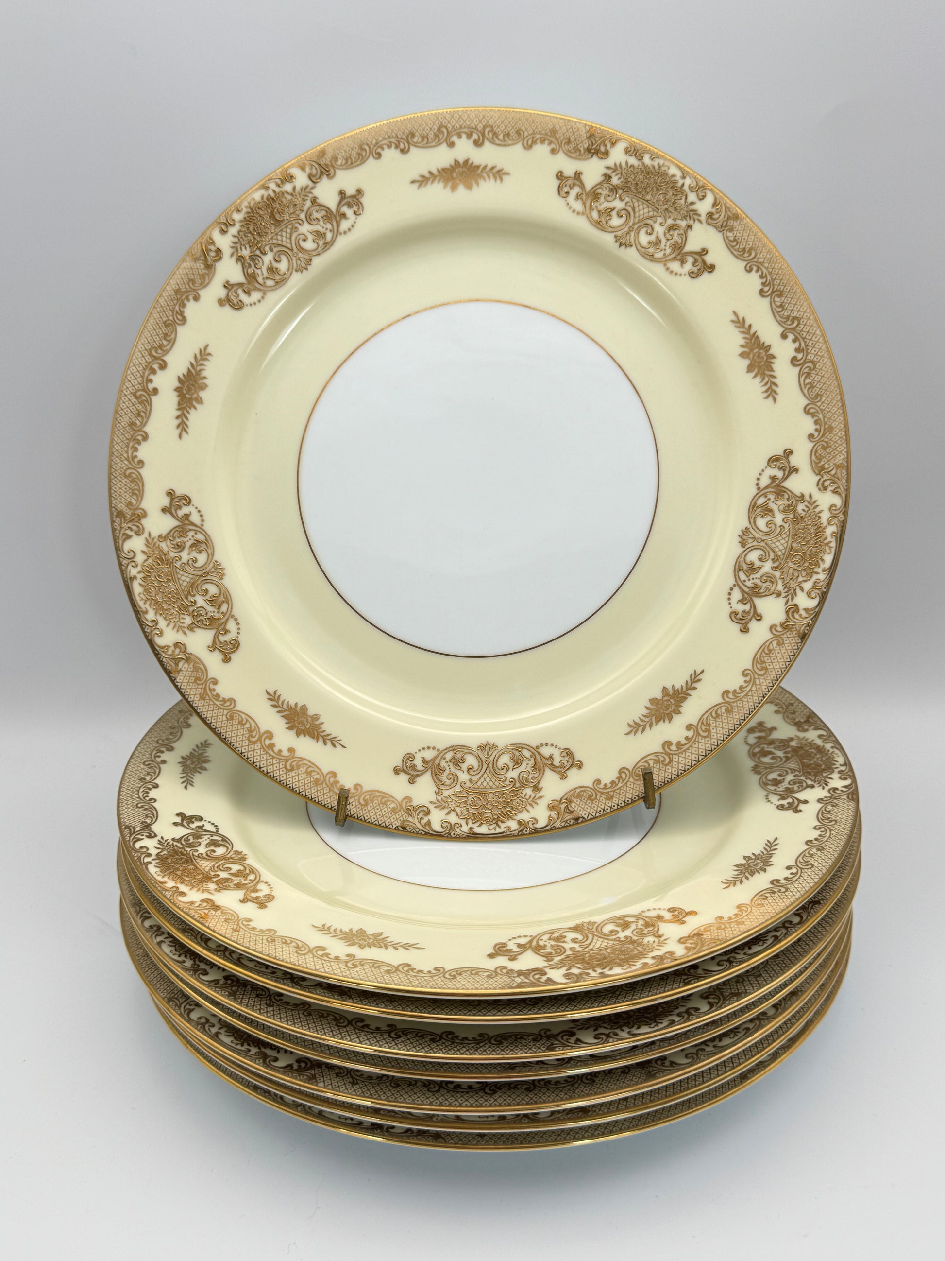 Set of 8 Vintage Noritake Mayfield Dinner Plates 10.5” Floral Gold Trim Japan