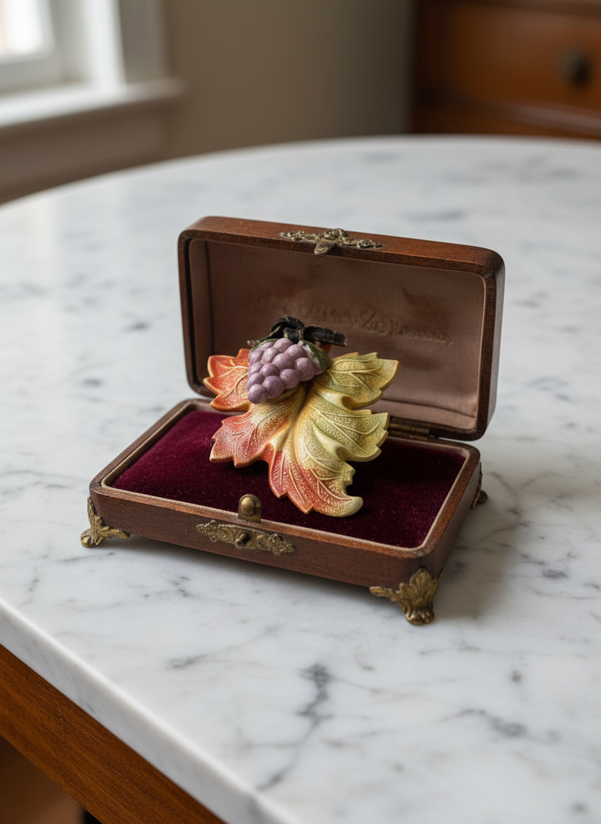 Vintage 1940s Celluloid Grape & Wine Leaf Brooch