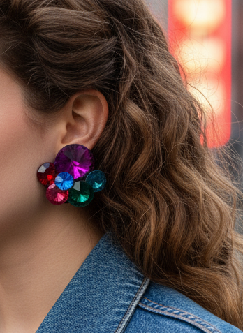 Add a touch of retro charm to your wardrobe with these vintage 80s earrings featuring lucite rhinestones. These clip-on earrings are perfect for any occasion and will add a pop of color to any outfit. The earrings are made of high-quality lucite material and have a metal purity of unknown. The huggie style earrings are perfect for the lobe and have a multicolor main stone color.