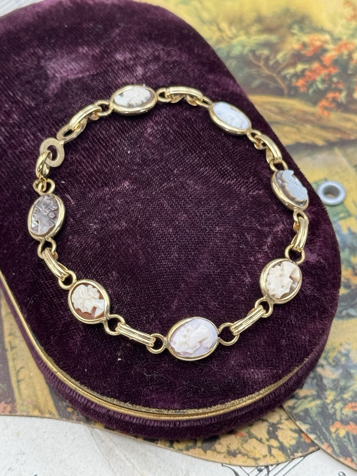 Claudia was a dear when I inquired about the Sweet delicate cameo bracelet… love the variety in the individual cameos. It fits my wrist to a T. Packaged with great care and delivered quickly. Love this seller- The Marialva Collection is top notch.
