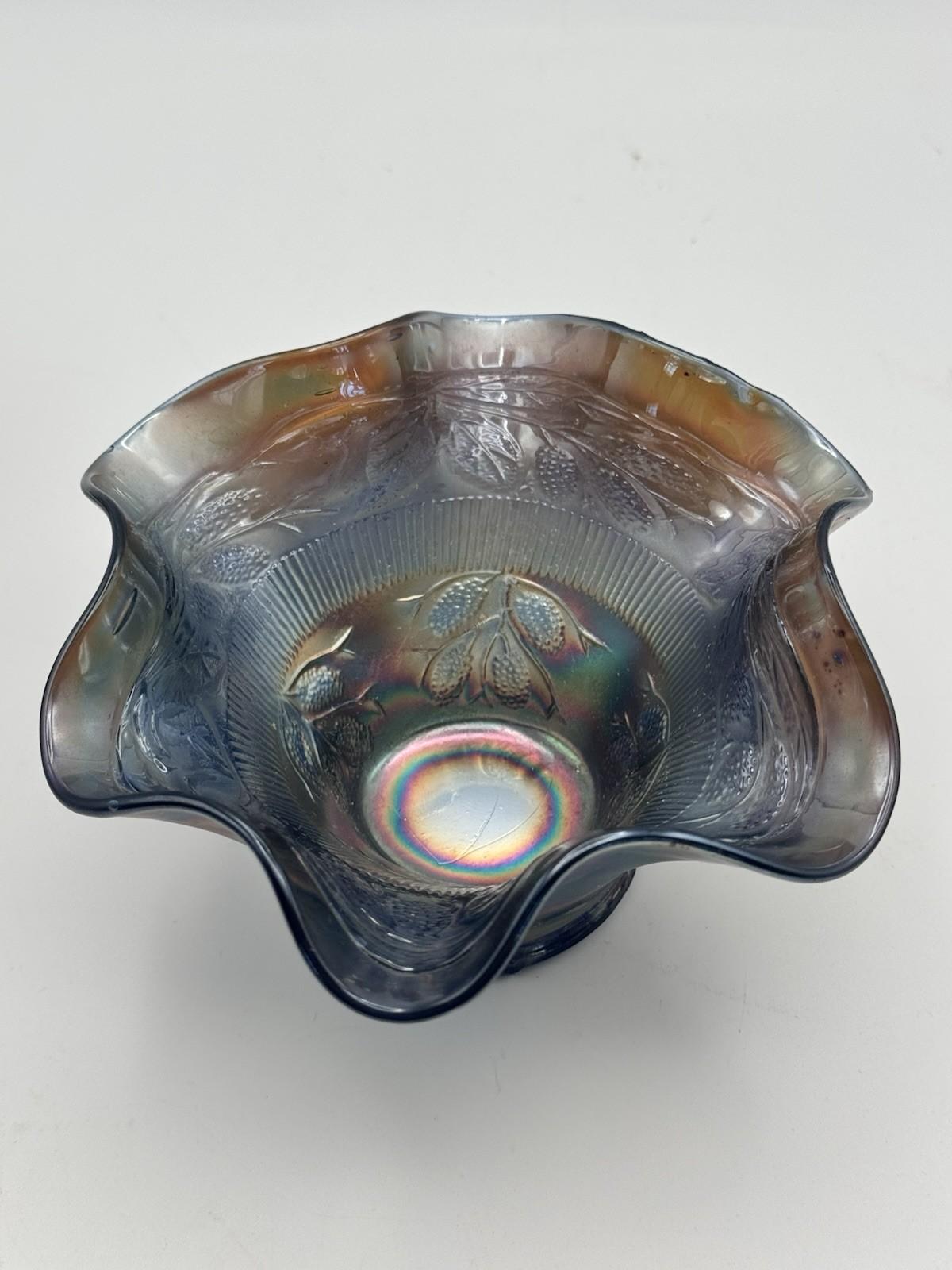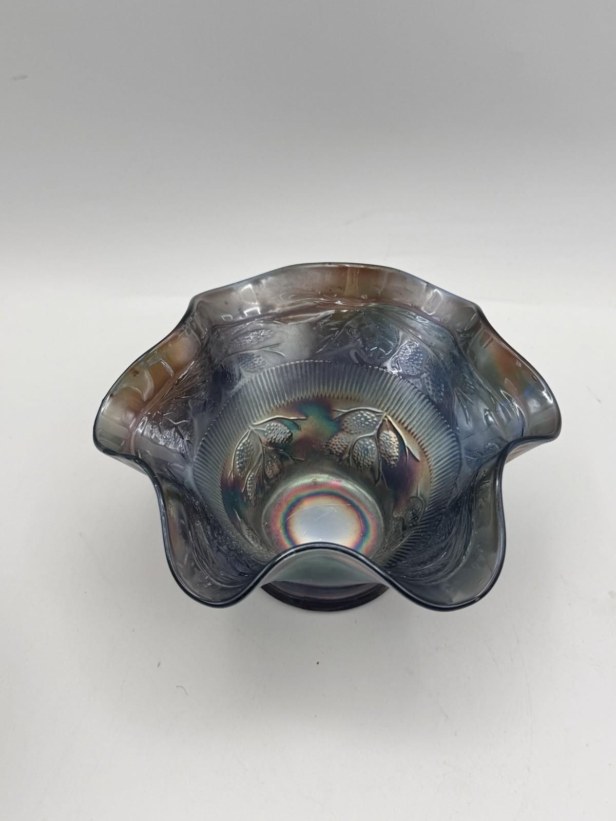 Vintage Fenton Bowl Blackberry Cobalt Blue Carnival Glass 6 Inch Ruffled #248