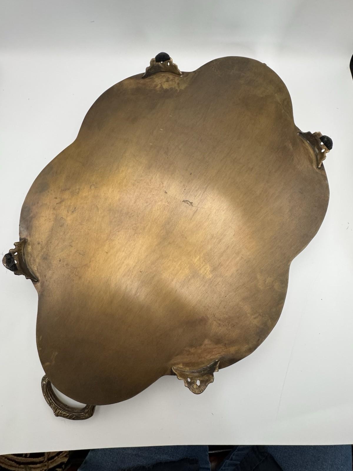 Vintage Tray Footed Gallery Brass AGED Handles Ornate Engraved Serving Tray