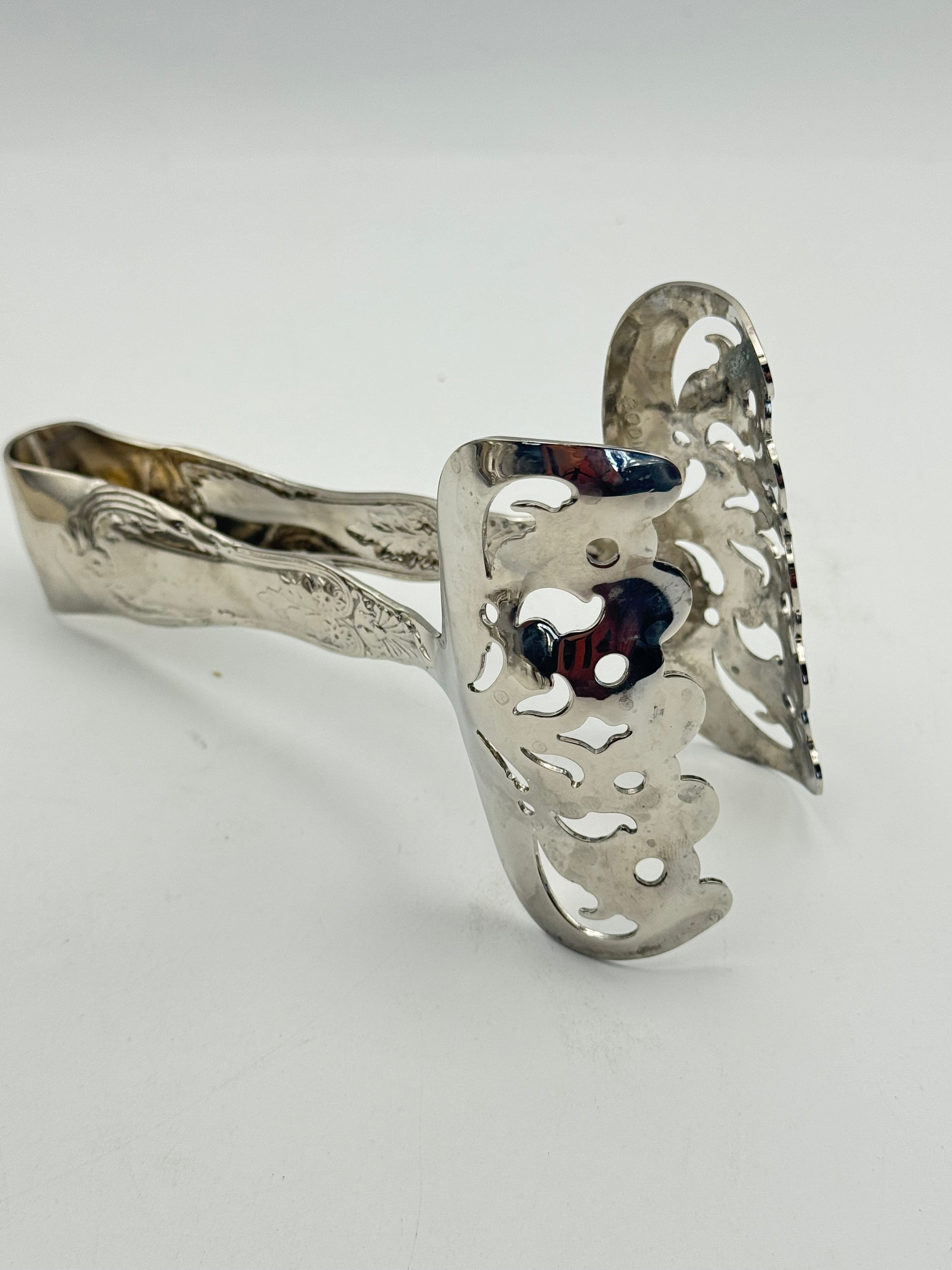 VINTAGE Godinger Silver Plate Asparagus / Pastry Tongs – Tiffany-Style Pierced Design, 6”