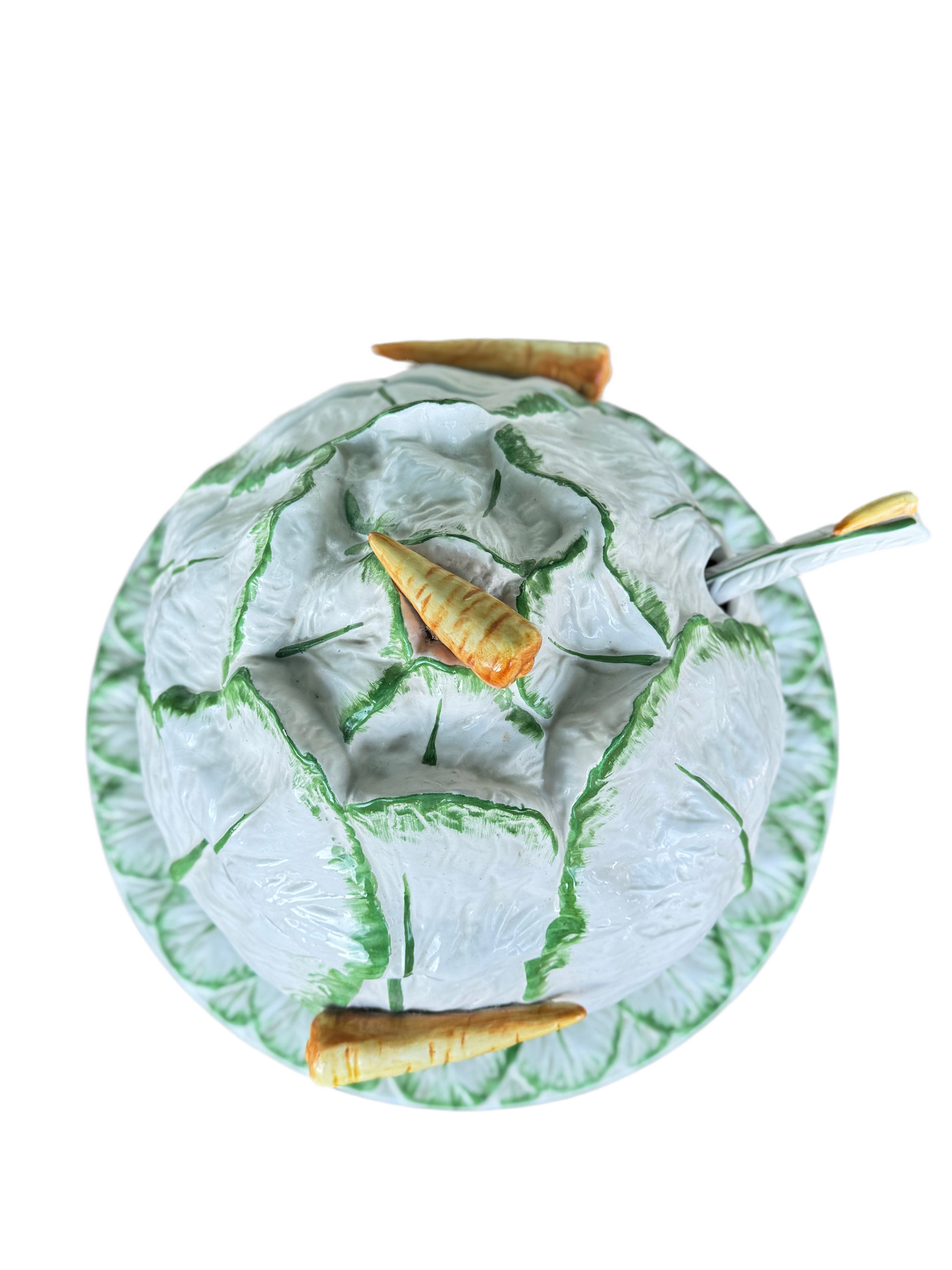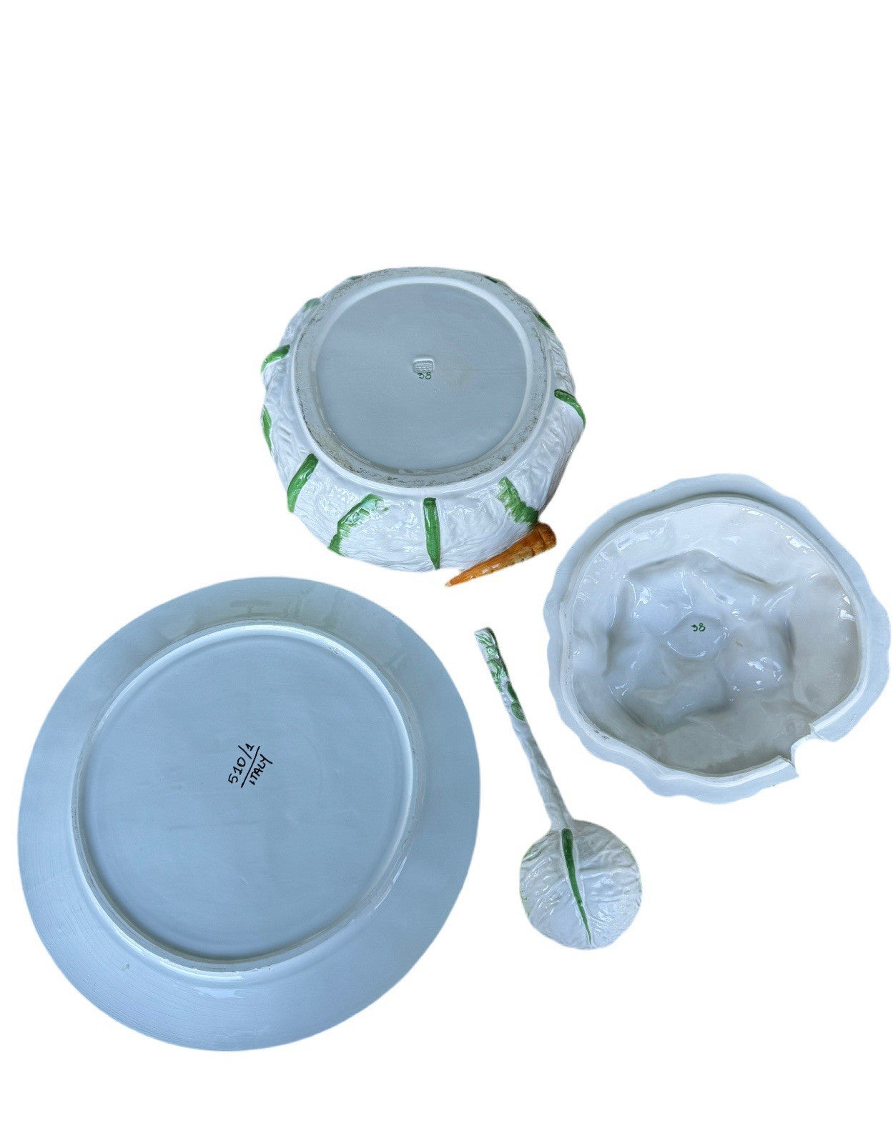 VINTAGE Italian Majolica Cabbage Tureen Set Carrot Handles Platter Ladle RARE