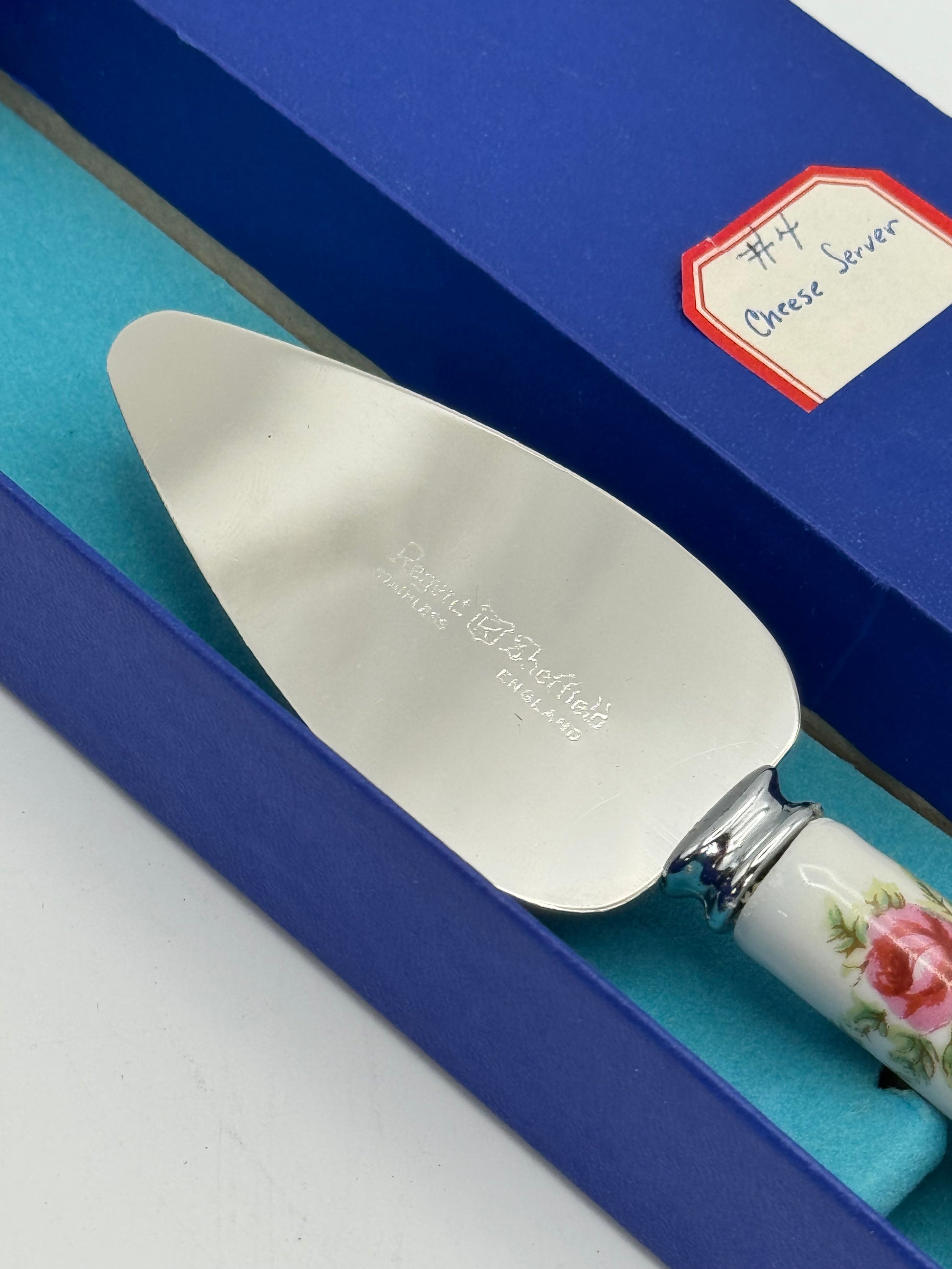 Vintage PRILL Sheffield England Porcelain Handle Cheese Server 7” w/ Box