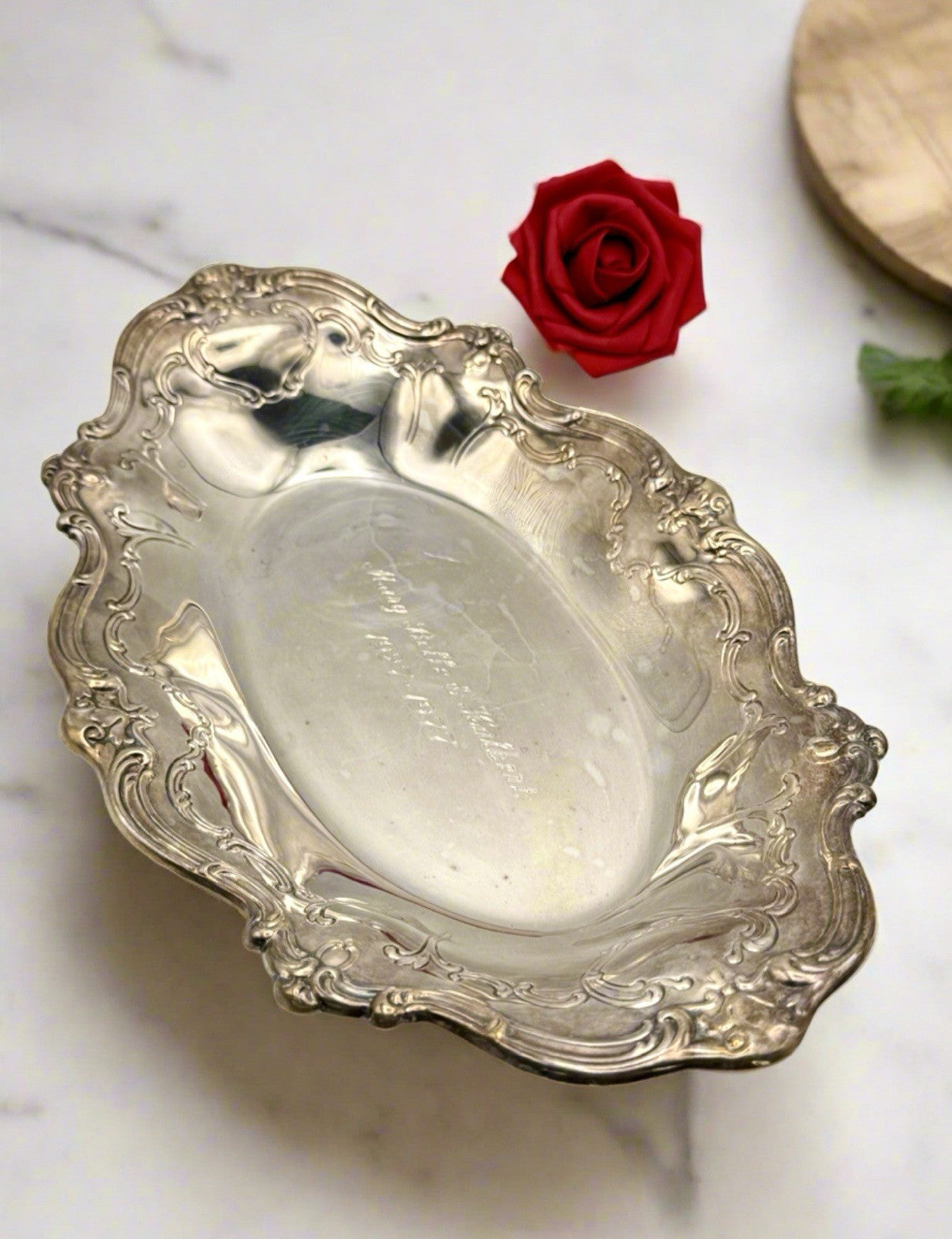 This vintage silverplate bread bowl is a unique estate find perfect for celebrating a 50th wedding anniversary.