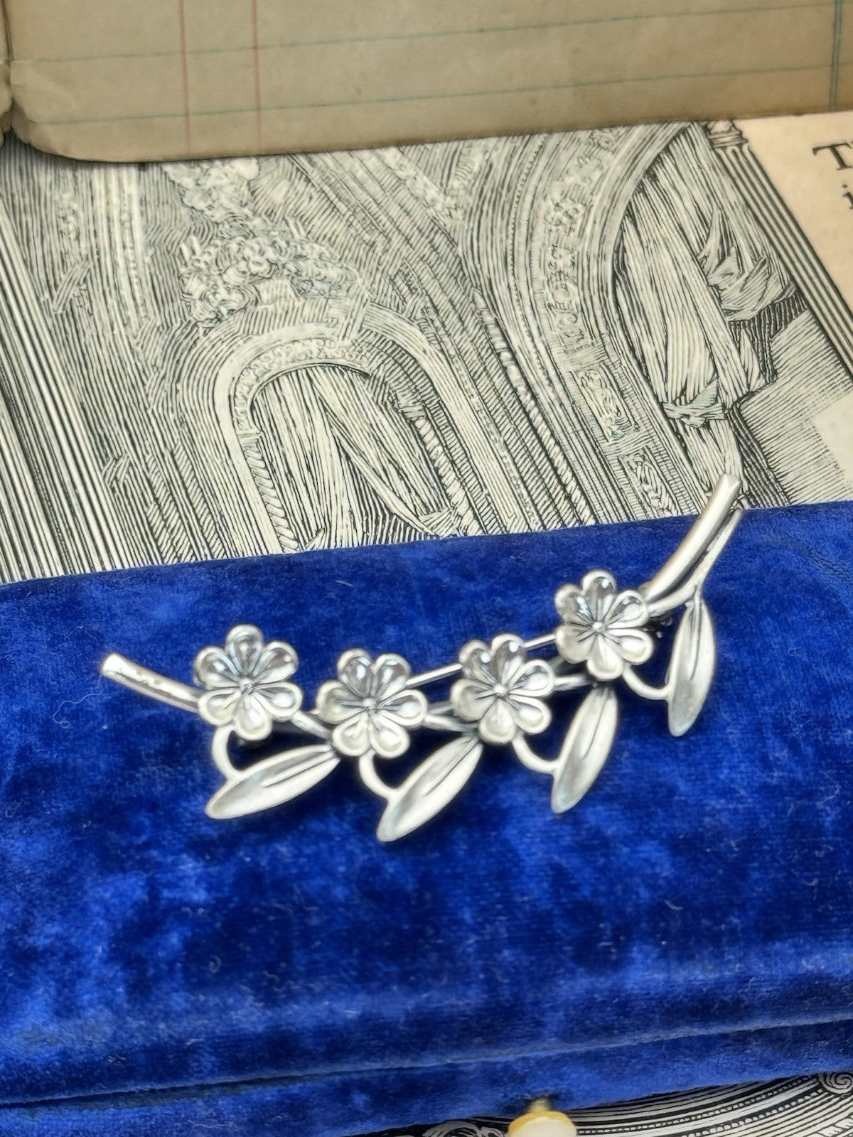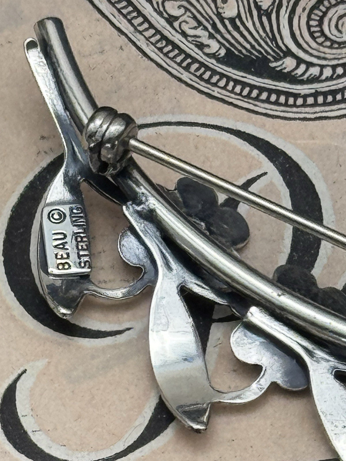 Vintage Sterling Flower Branch Brooch BEAU Sterling