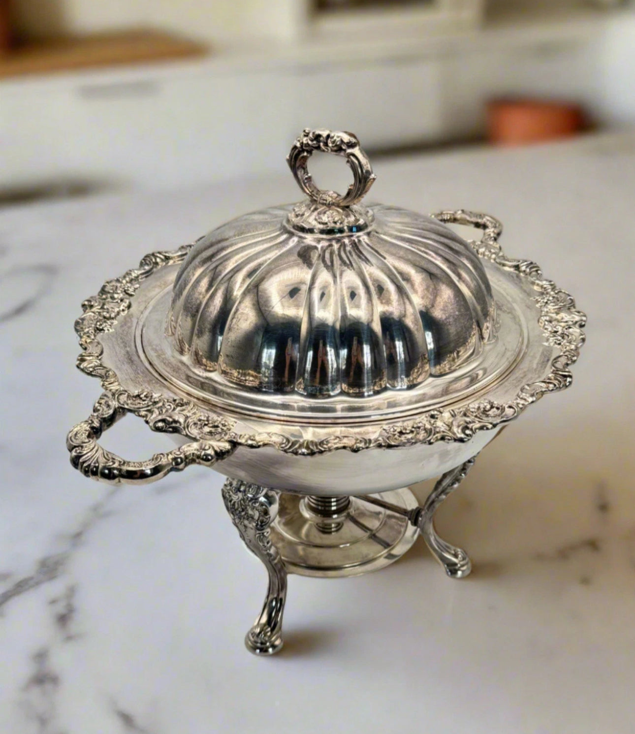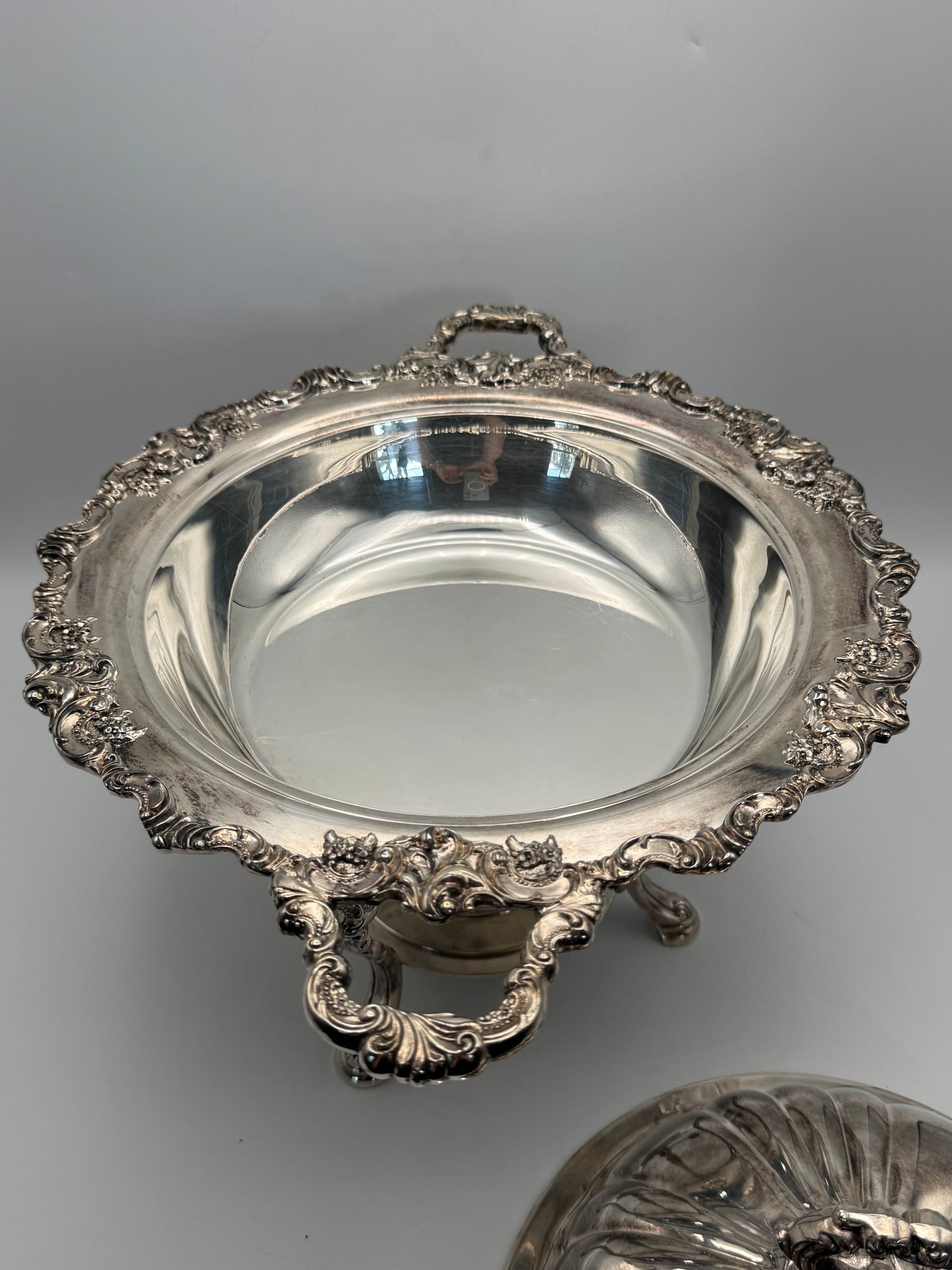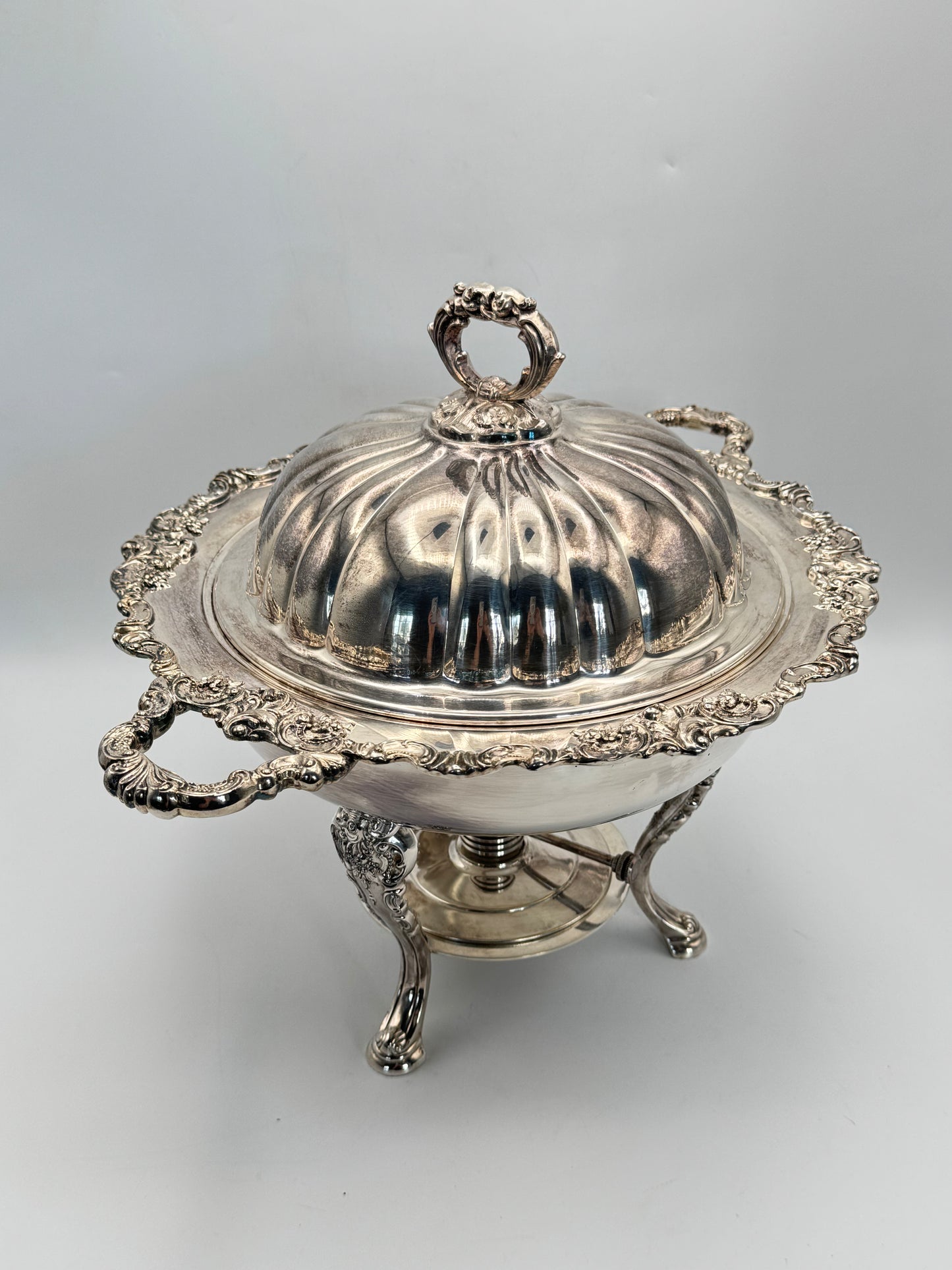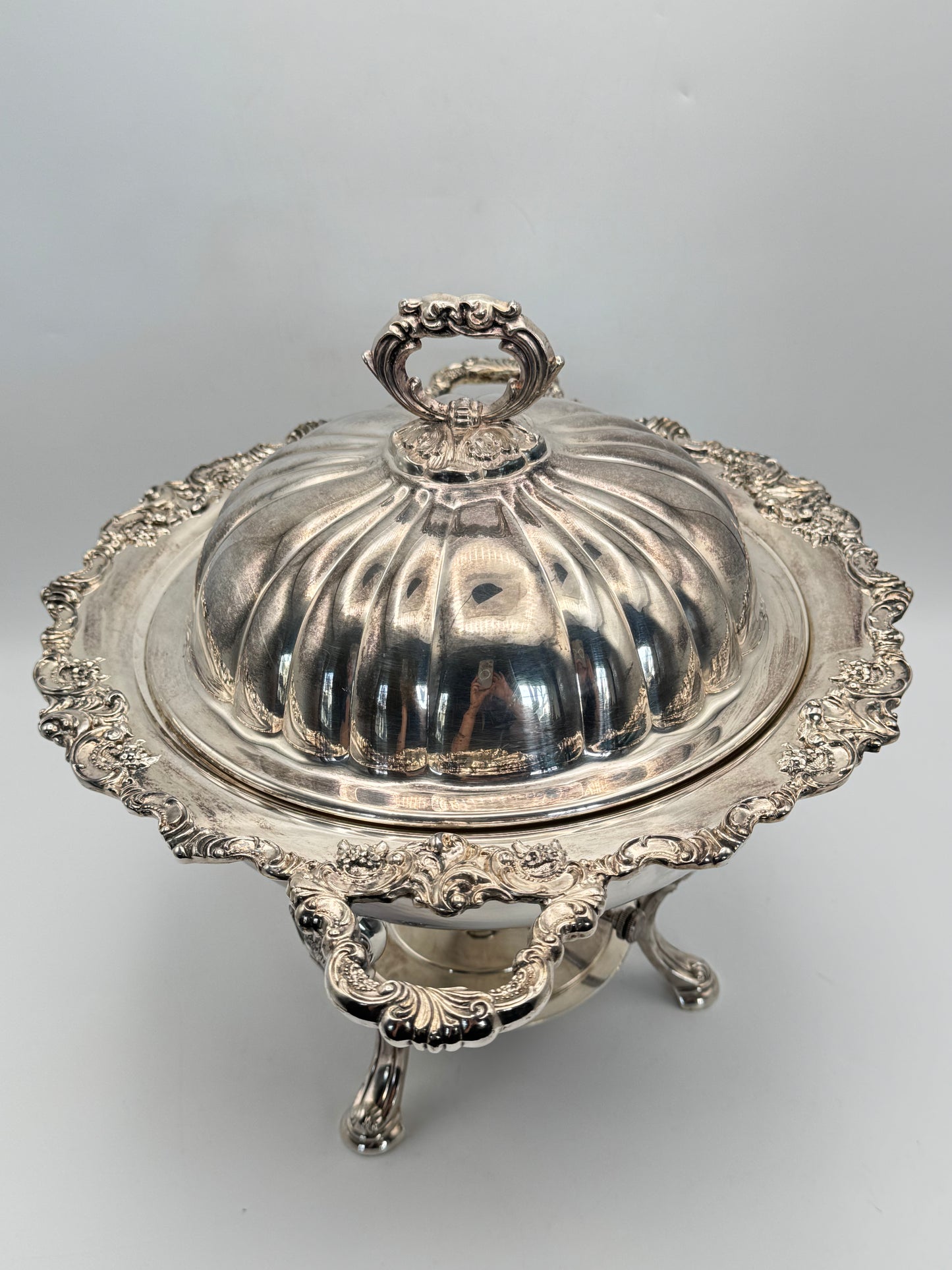 Wallace Baroque Silverplate Chafing Dish 244 Ornate Footed with Burner