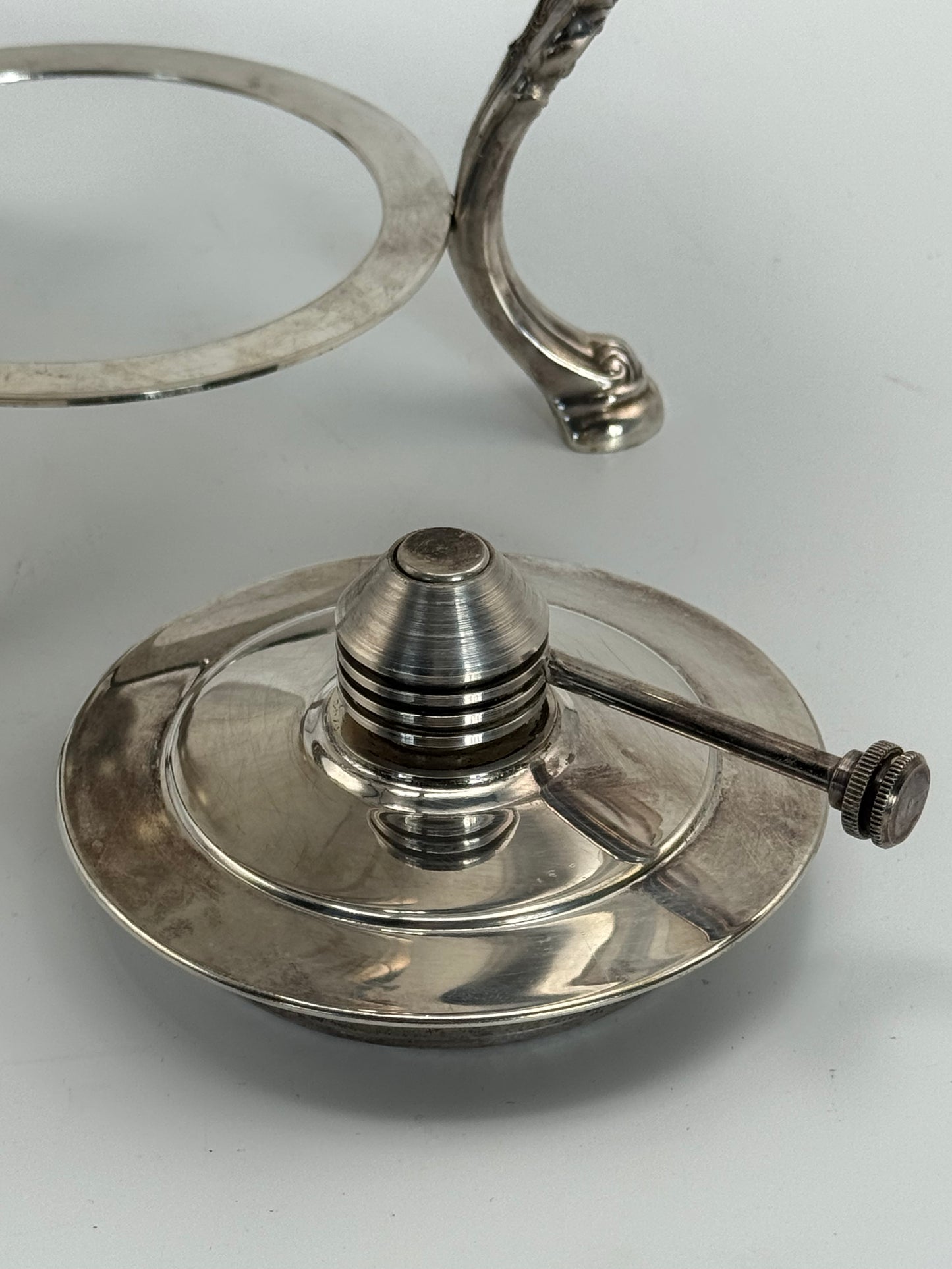 Condition: Very good vintage condition. Light surface wear/tarnish from age and use. Burner ring is not permanently attached but sits securely when inserted; can be permanently affixed if desired using a strong adhesive such as E6000. Displays beautifully and remains functional.