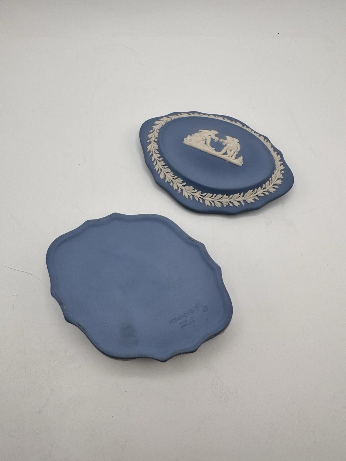 Wedgwood Jasperware Trinket Box Blue White Relief 4.5”